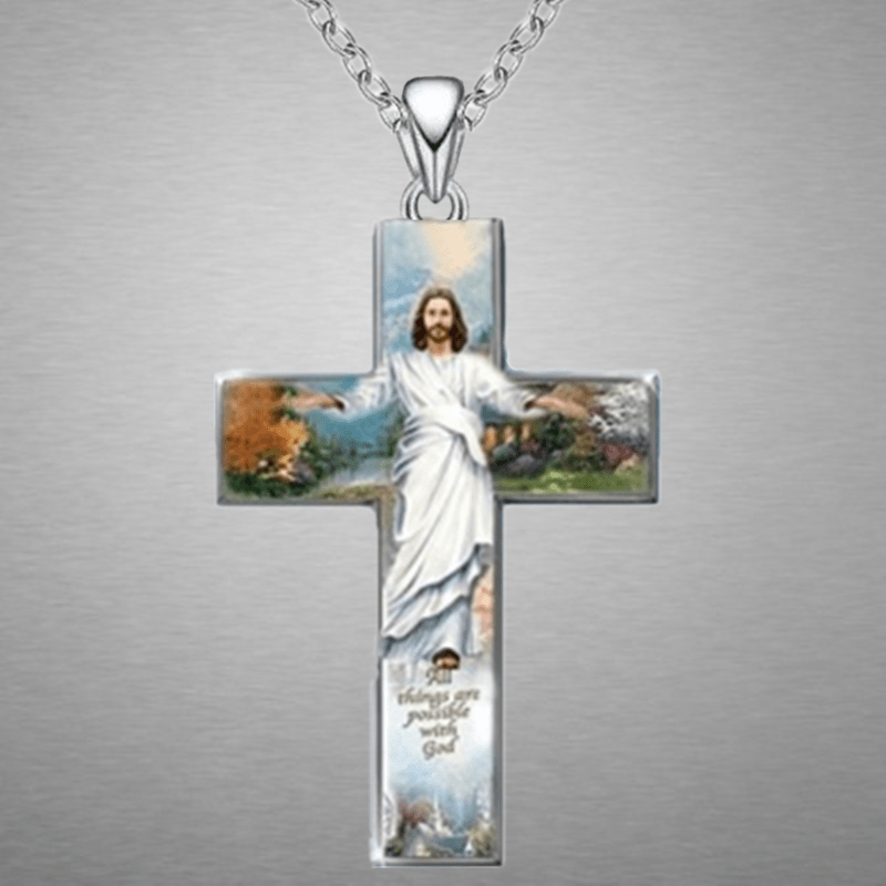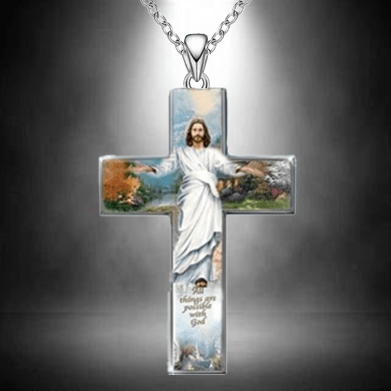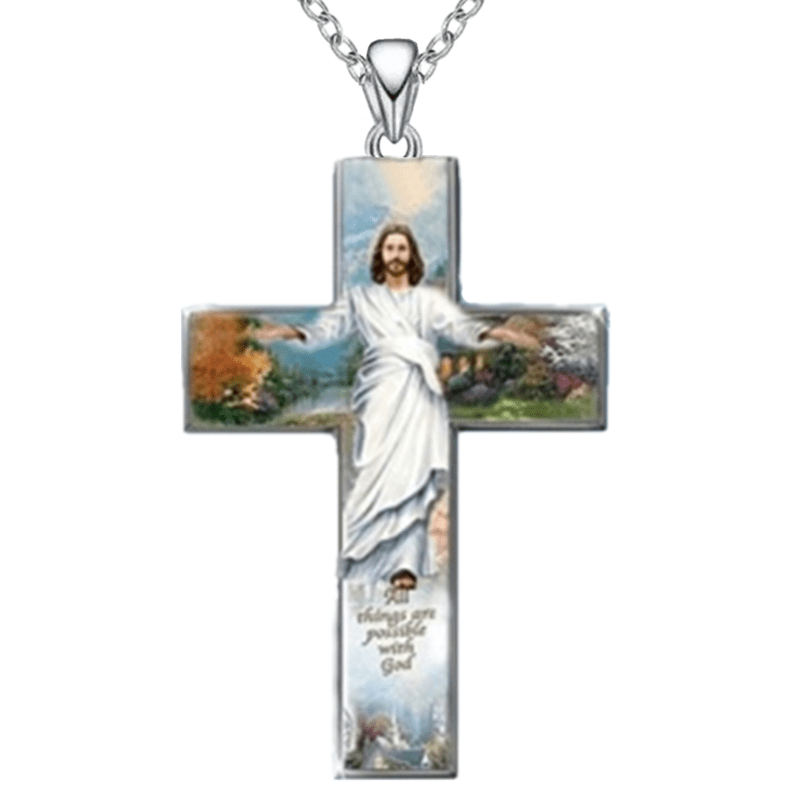 Express your faith and style with this Holy Jesus cross pendant necklace. A unique and meaningful accessory for any occasion.