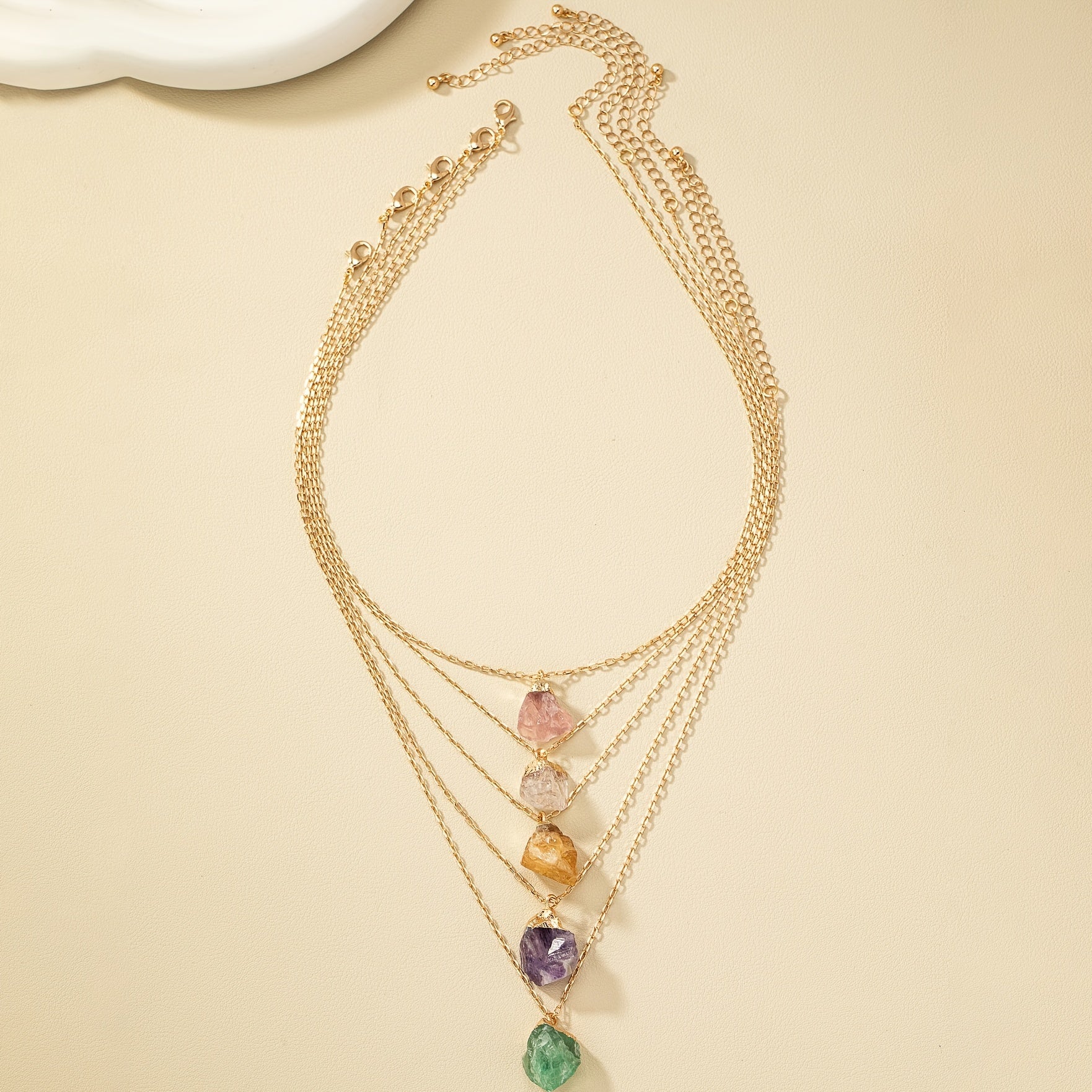 Enhance your style with this stunning irregular crystal stone pendant necklace. It features a 14k plated chain that adds a touch of elegance to any outfit.