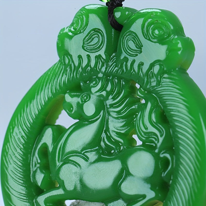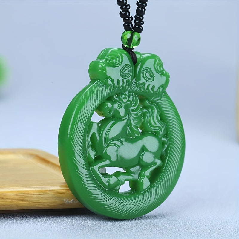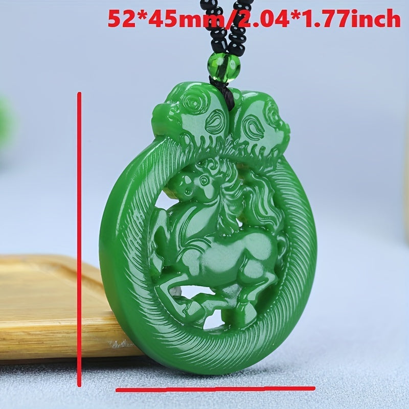 This beautiful jade stone pendant features a cutout carved design of a zodiac horse, making it a perfect gift for Thanksgiving, Christmas, birthdays, or any special occasion. Ideal for men, women, and friends.