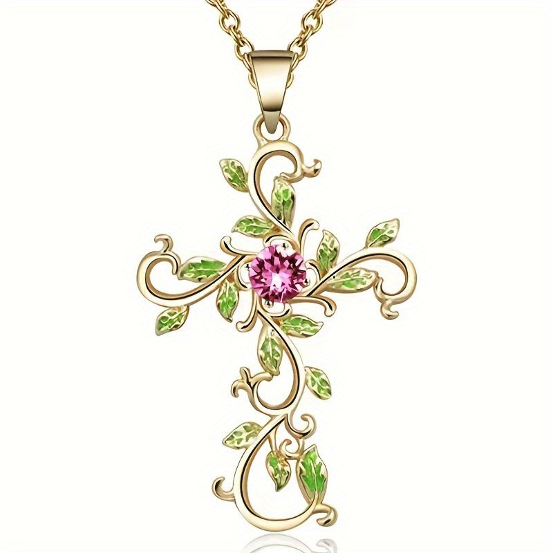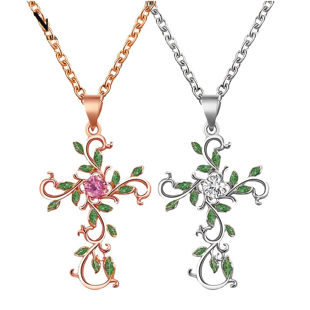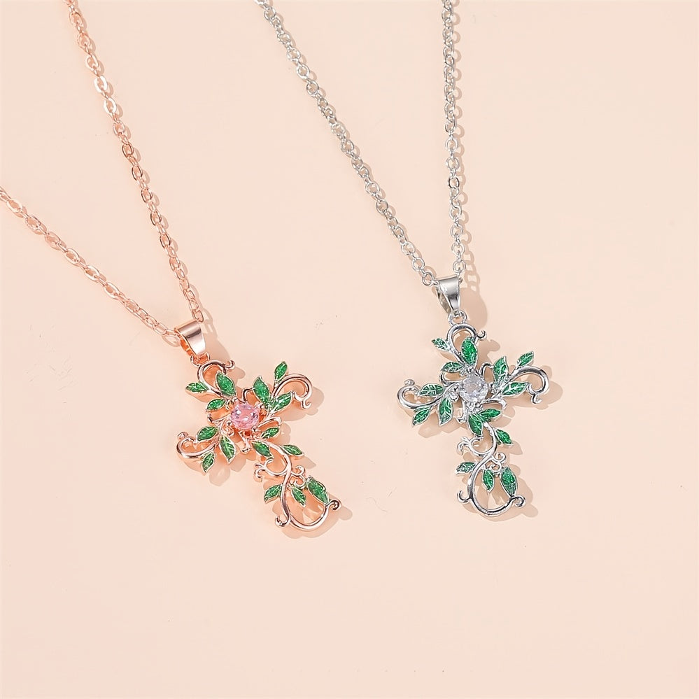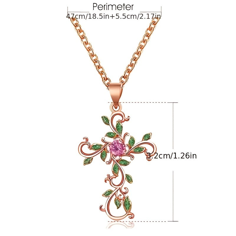 This elegant necklace features a leaf cross pendant with inlaid zircon for a touch of sparkle. Symbolizing good luck and protection, this neck jewelry is a meaningful accessory for everyday wear.