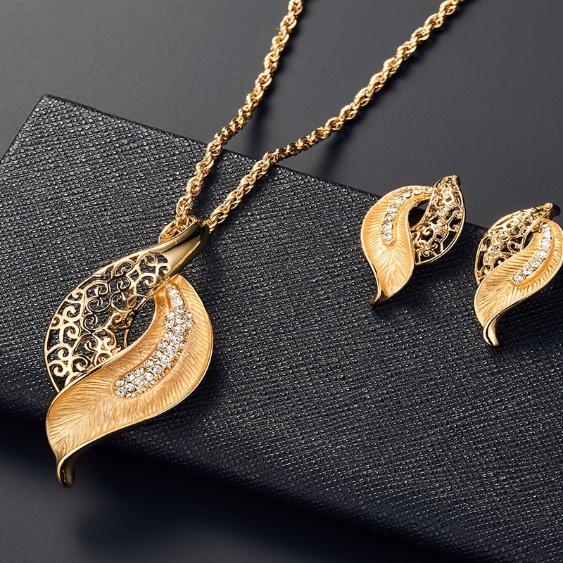 Elegant hollow leaf design set with inlaid rhinestones. Perfect gift for women to elevate their outfit.