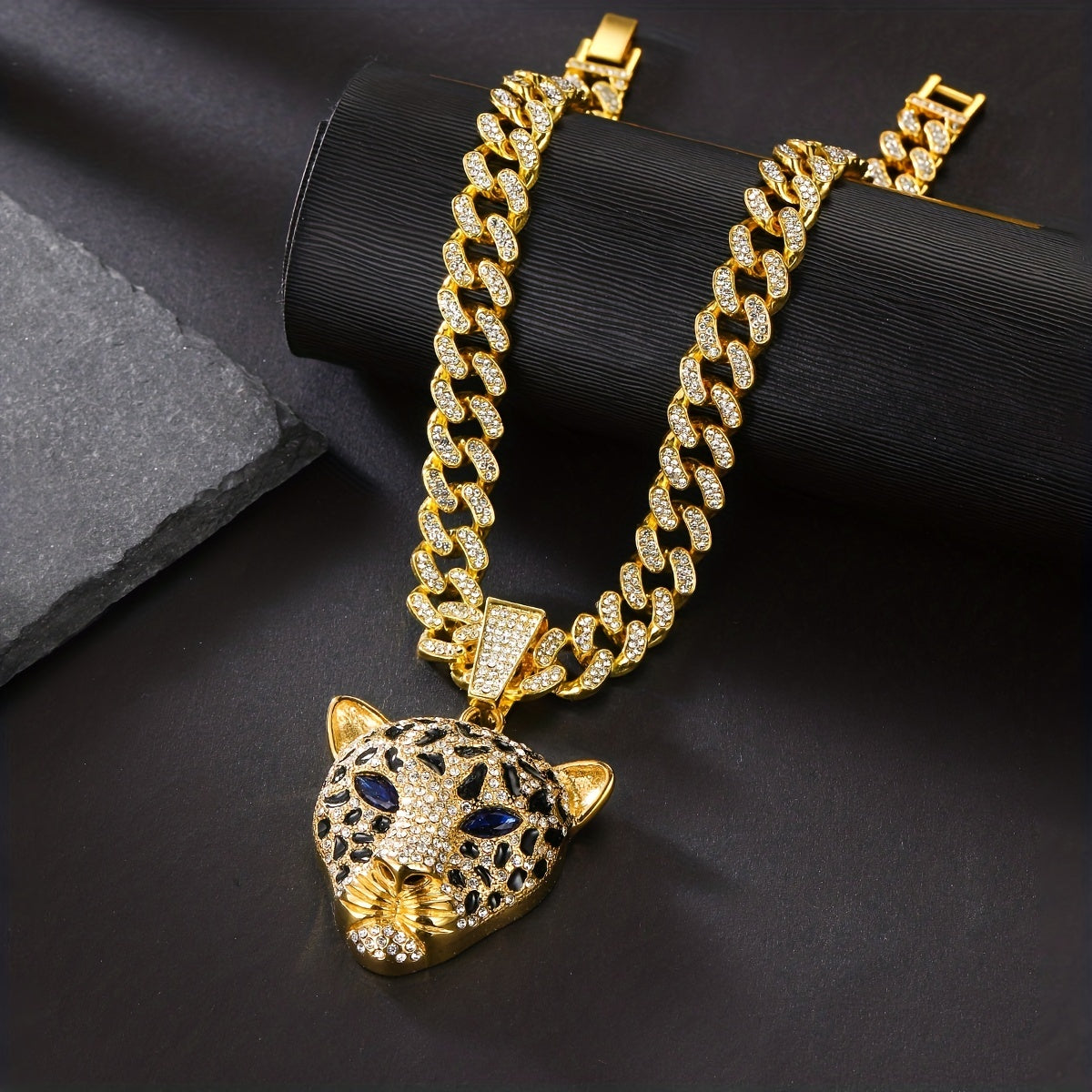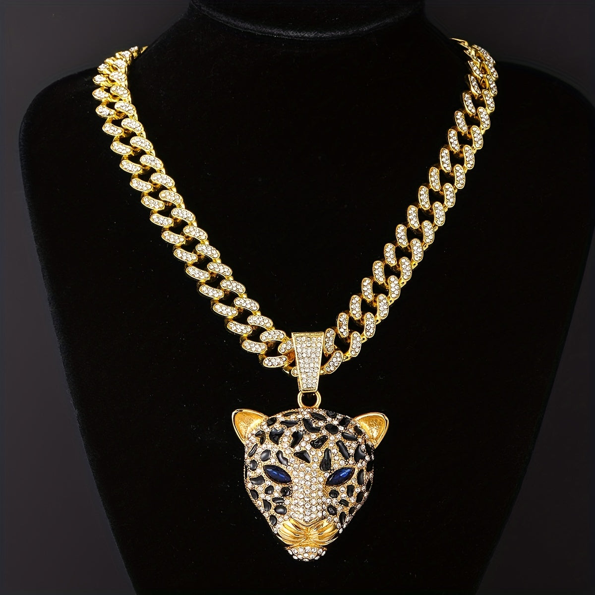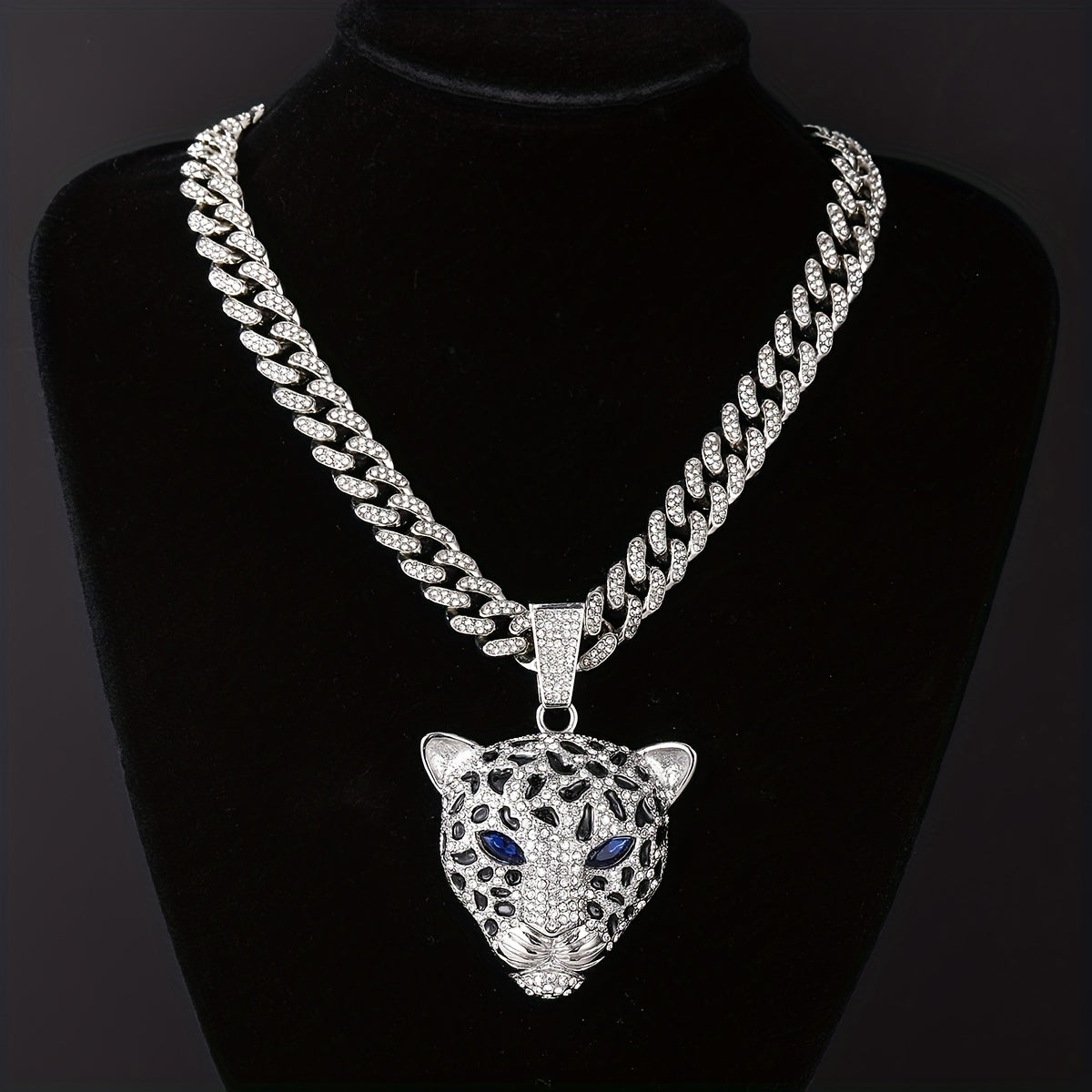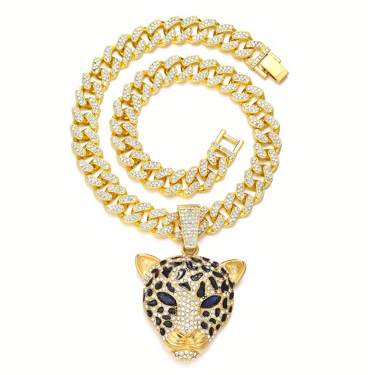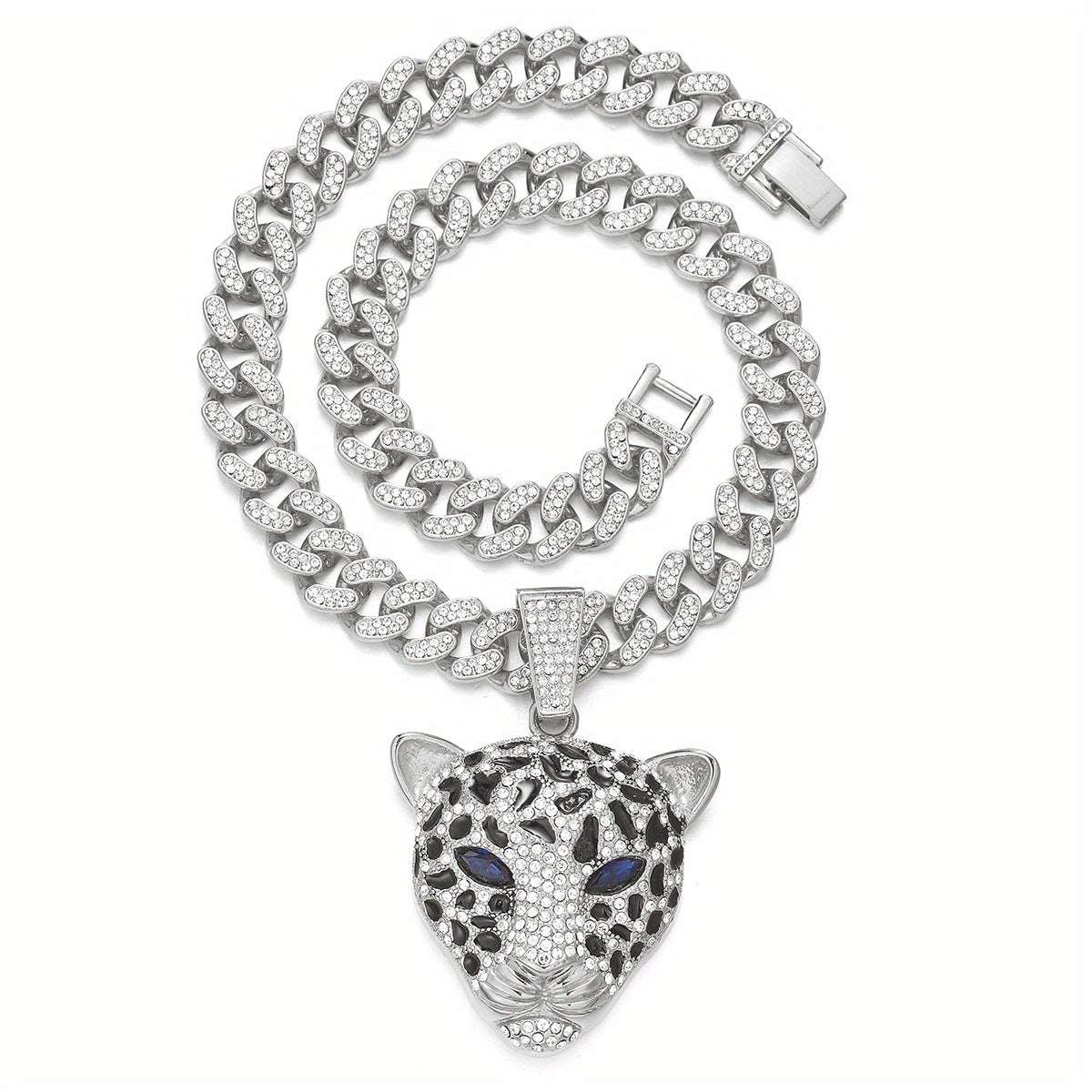 Stand out with this trendy Leopard Head Pendant Necklace featuring a Cuban Link Chain. Perfect for a stylish and edgy look.