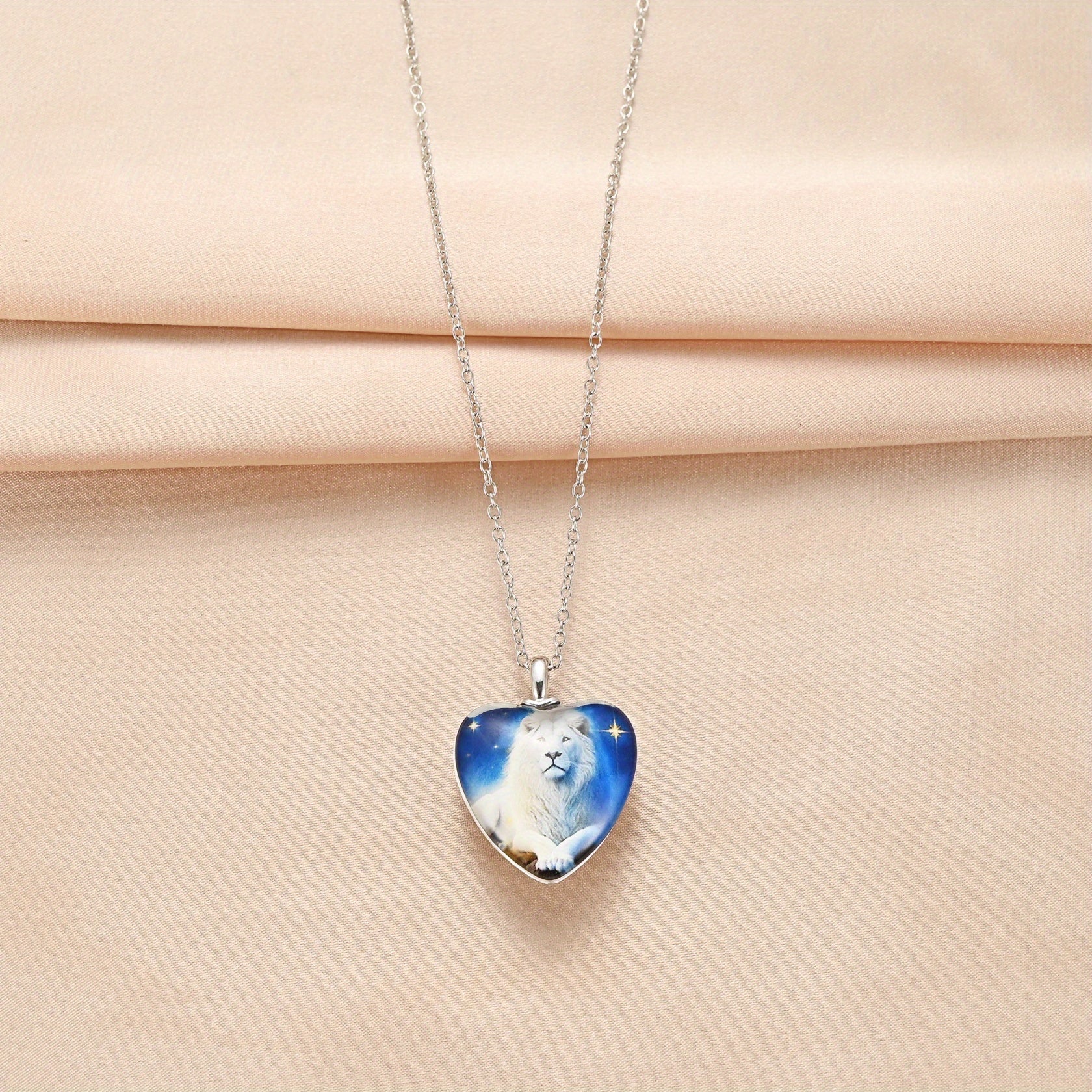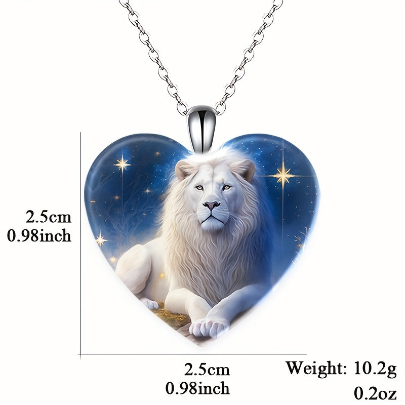 This pendant necklace features a lion pattern design in a heart shape, making it a perfect jewelry gift for Thanksgiving, Christmas, or birthdays.