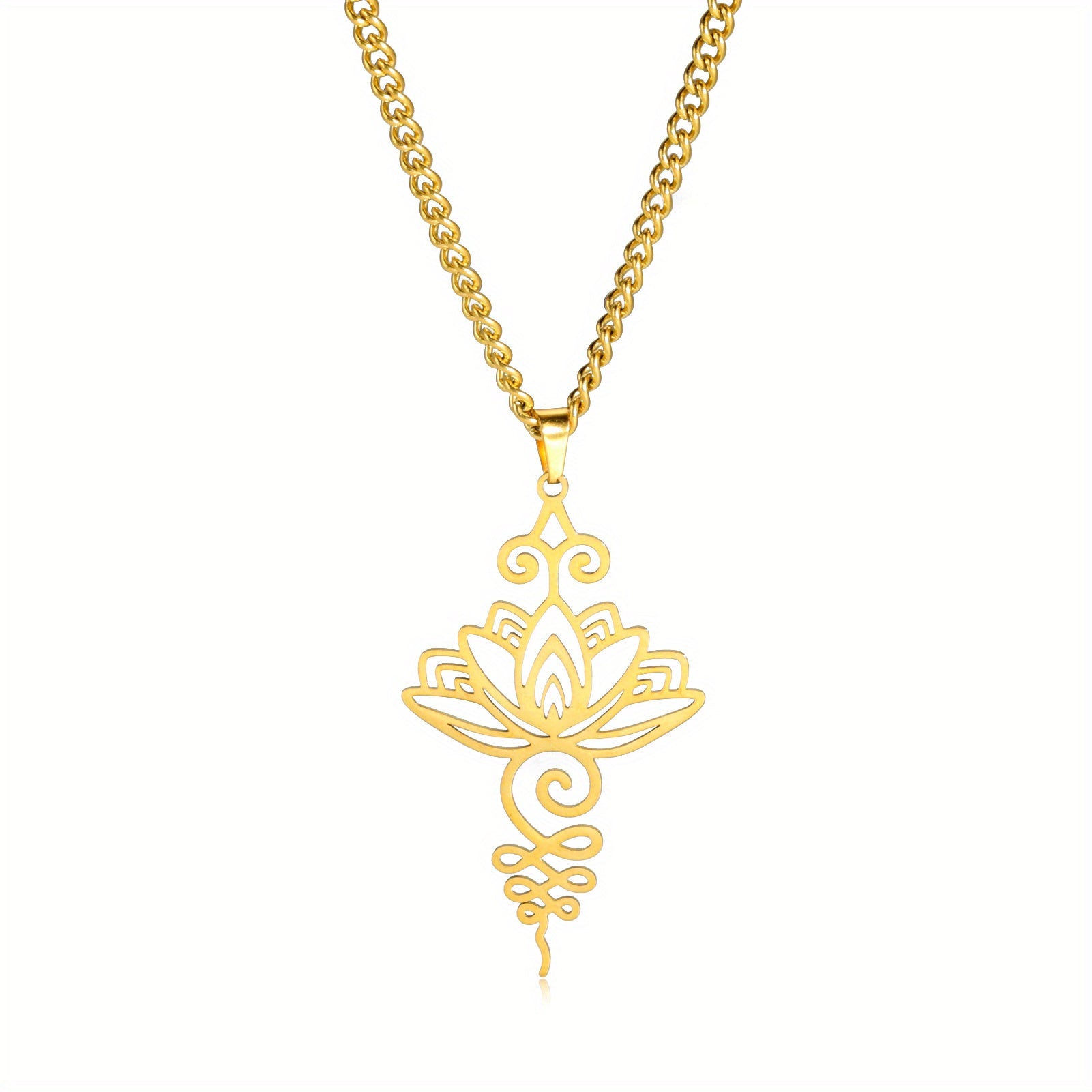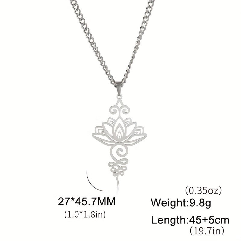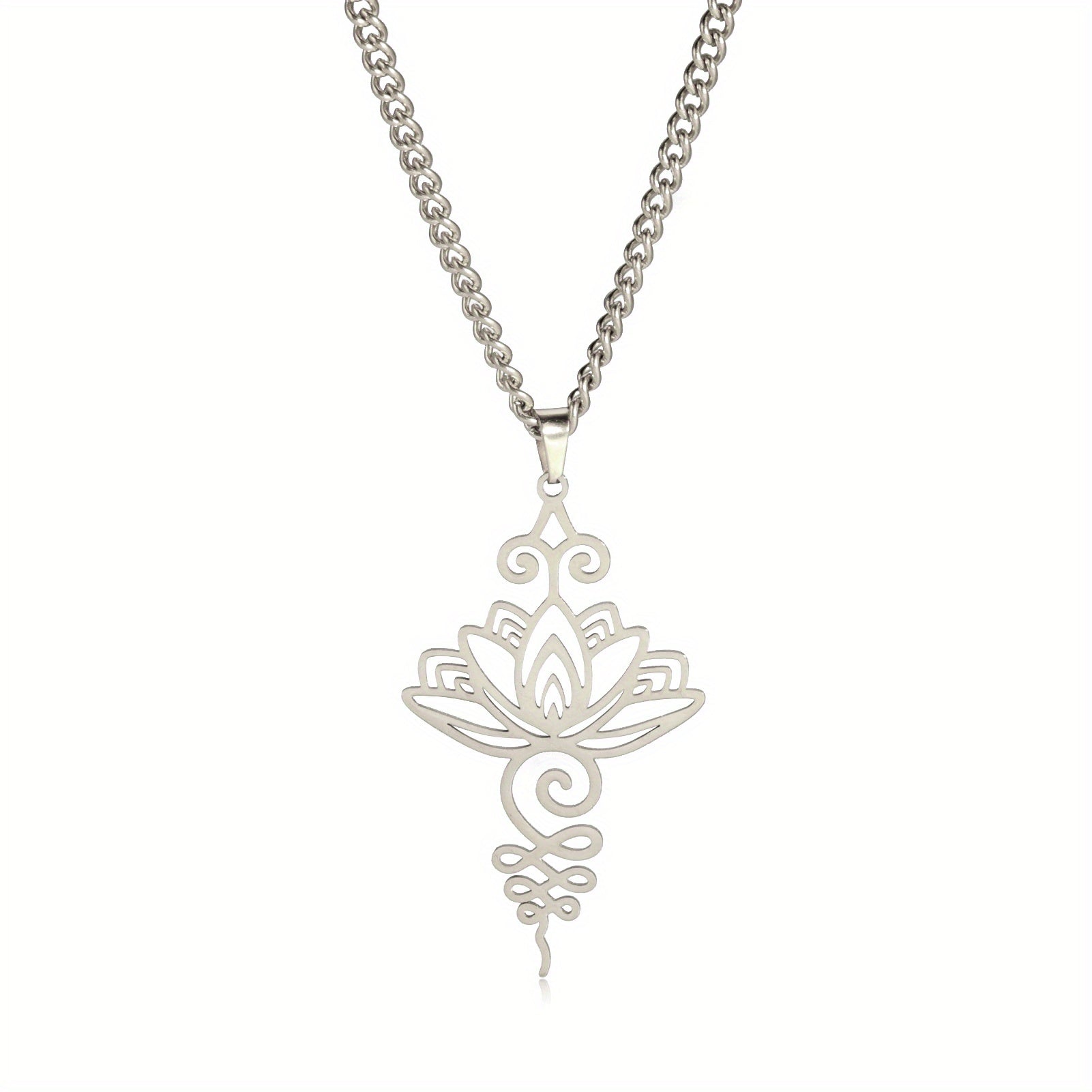 Stainless steel necklace featuring a lotus flower pendant with Unalome chakra symbol, perfect for yoga and healing practices. Ideal Christmas gift for loved ones.