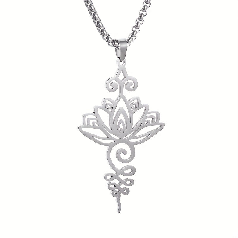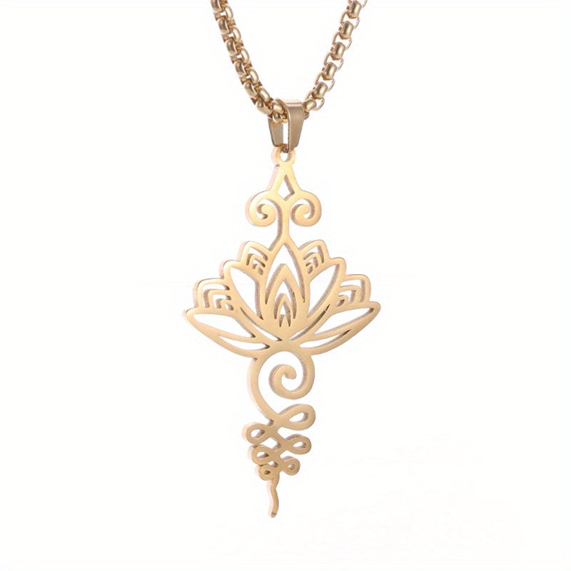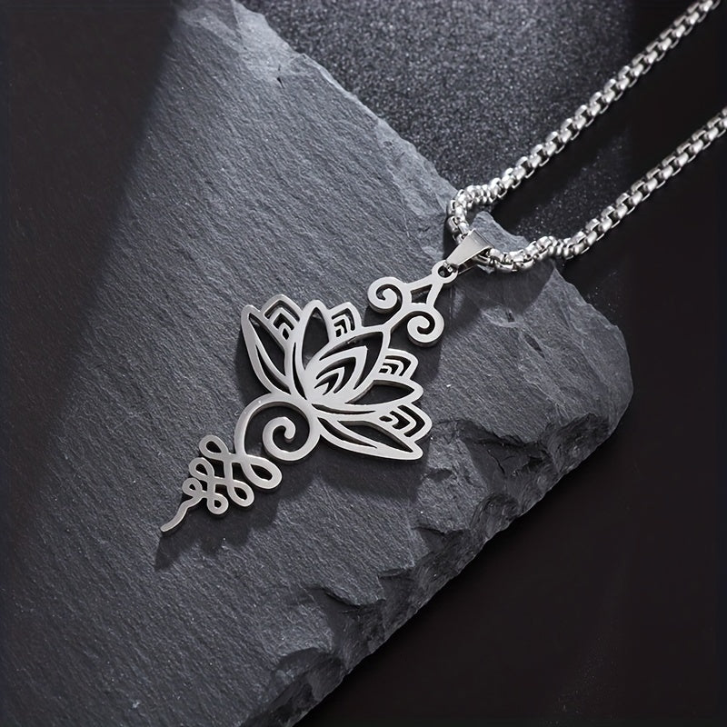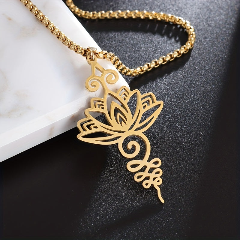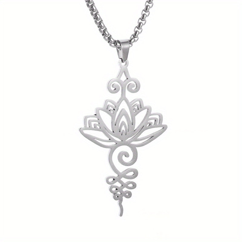 Add a touch of sophistication to your look with this lotus shape pendant necklace. Made of durable stainless steel, perfect for parties, daily wear, and hip hop style.