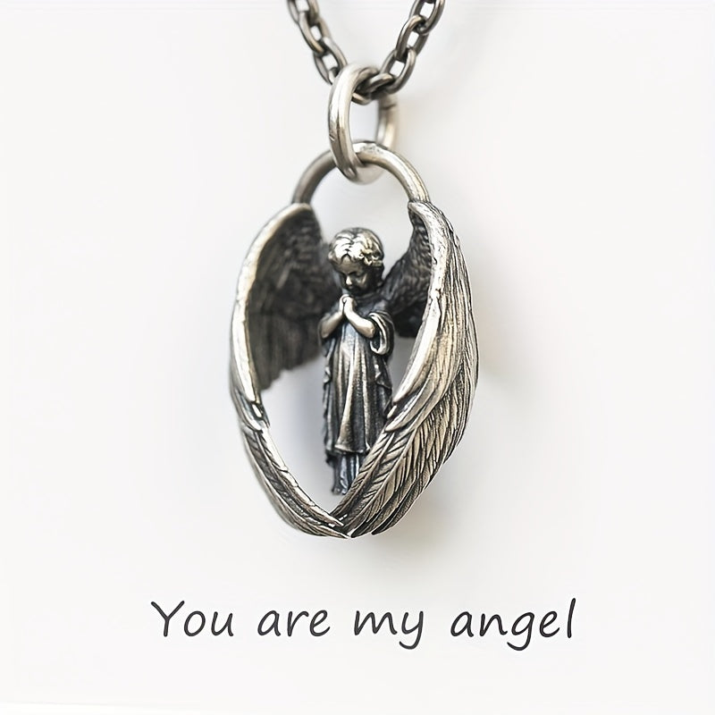 Elegant angel pendant necklace for men with a touch of luck and blessings. Perfect for hip hop and punk styles.