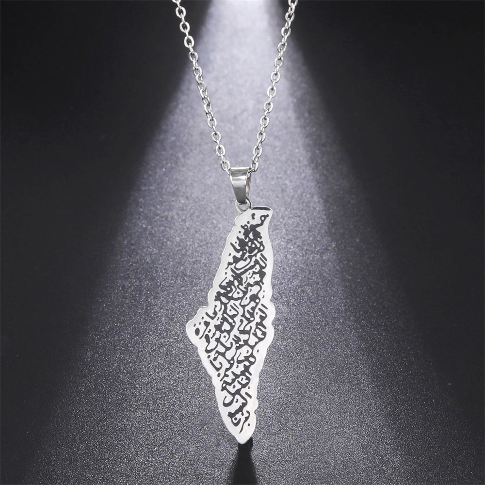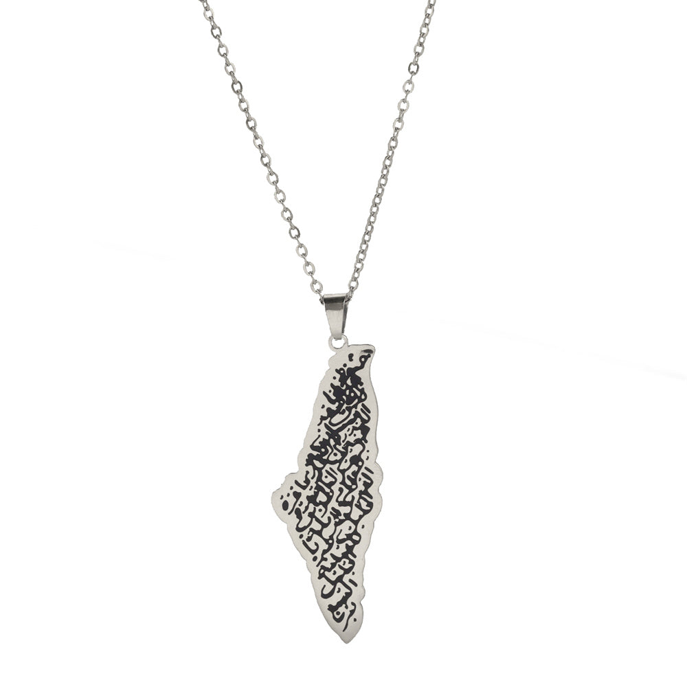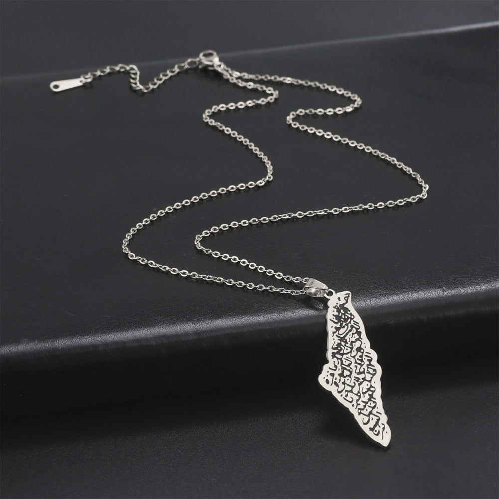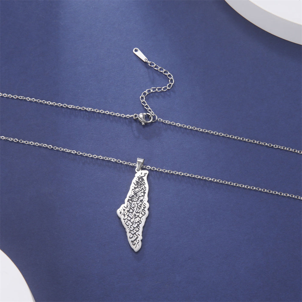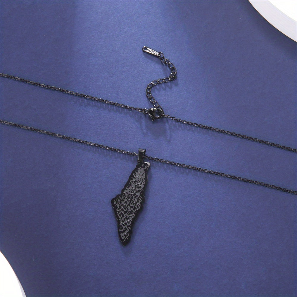 This stylish map pendant necklace features a text pattern design, perfect for geography lovers. It is a charming piece of jewelry suitable for both women and men.