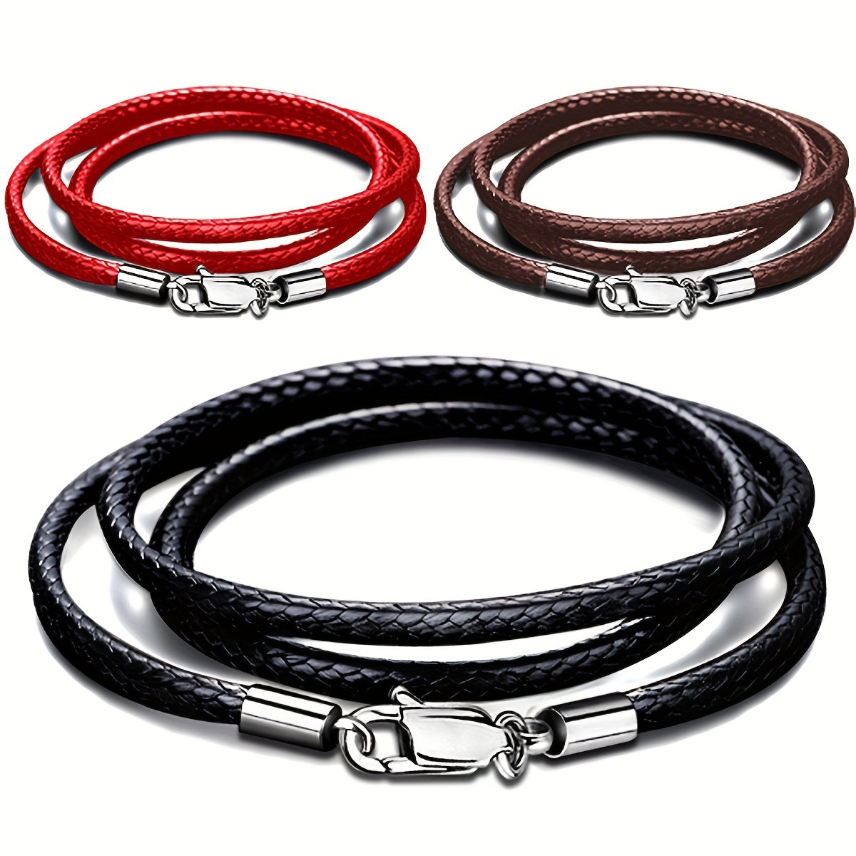 This 3mm wax cord choker necklace features a stainless steel clasp for a stylish and durable accessory. The length is 16 inches, suitable for men.
