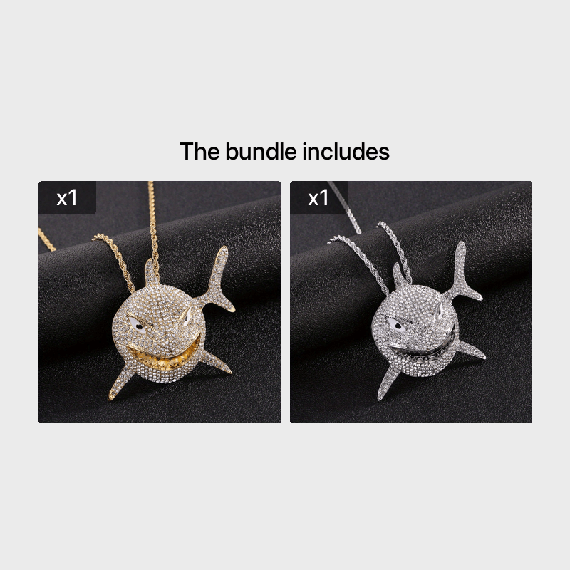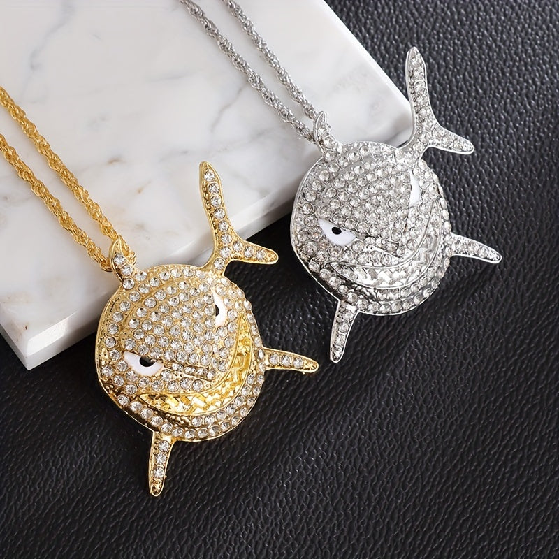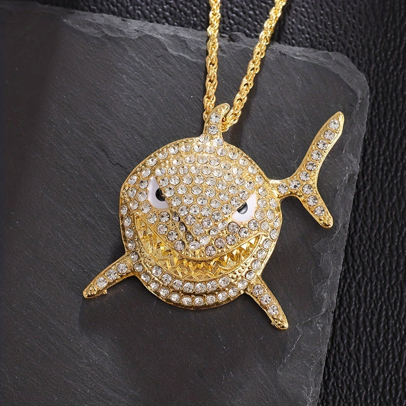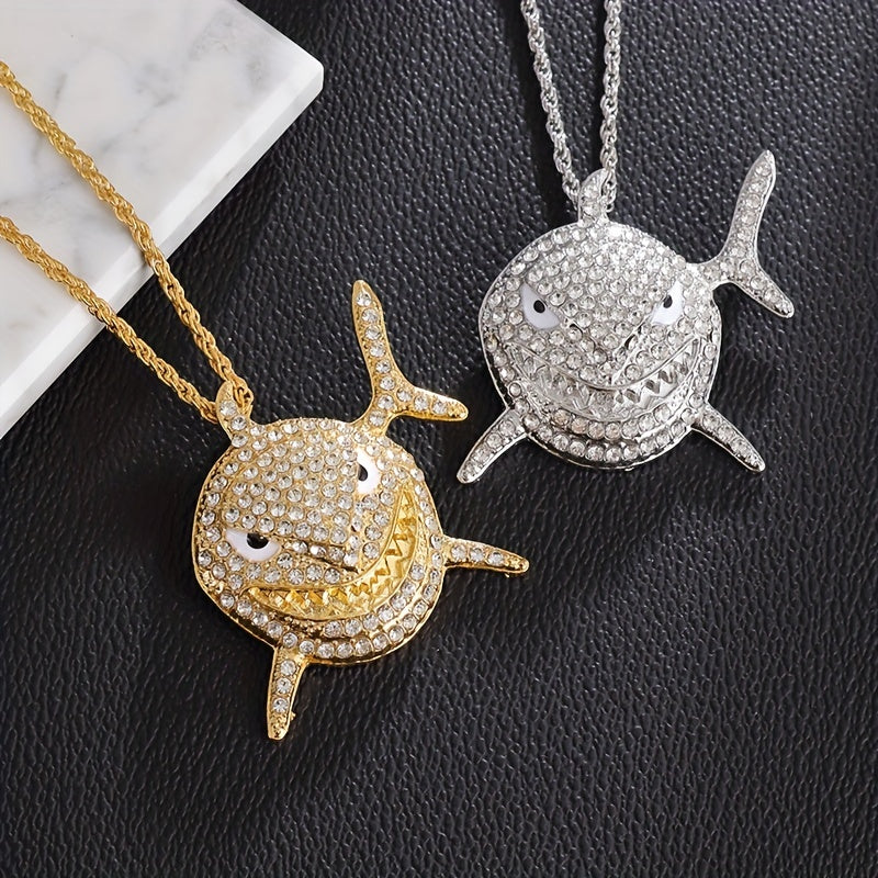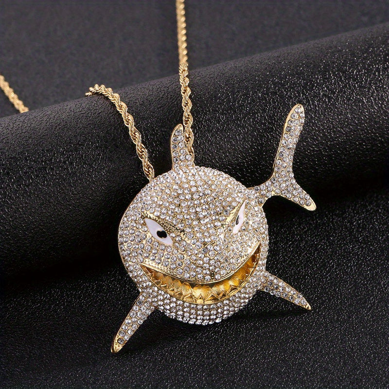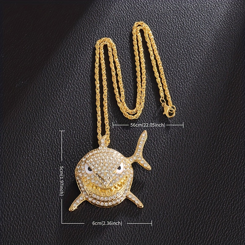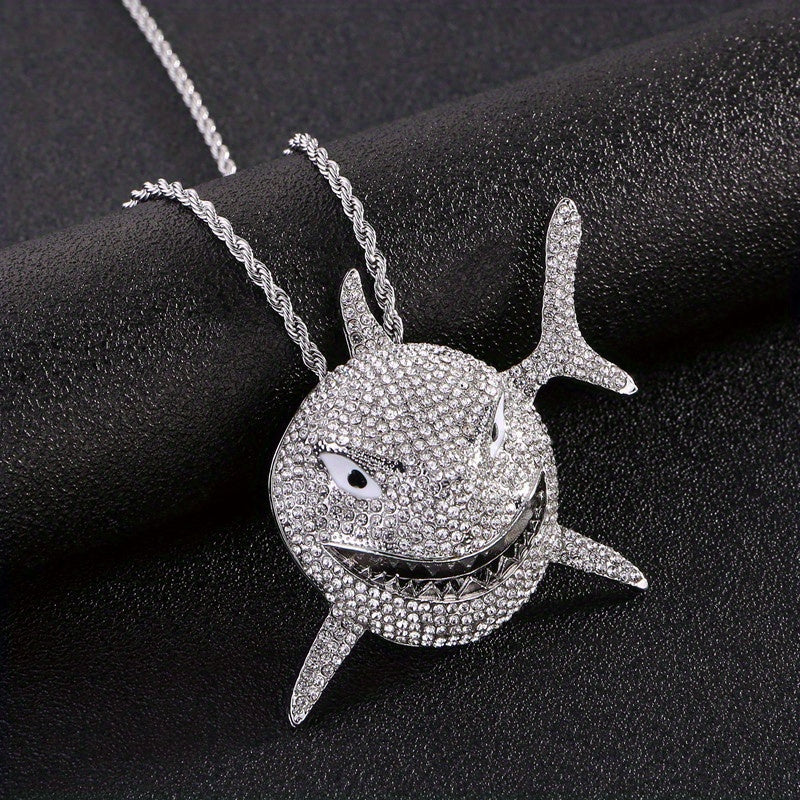 Elevate your style with this hip hop shark pendant necklace featuring a large rhinestone shark pendant. Perfect as a statement piece for any outfit.