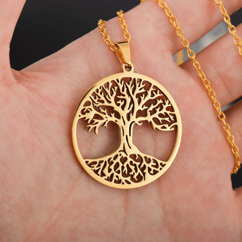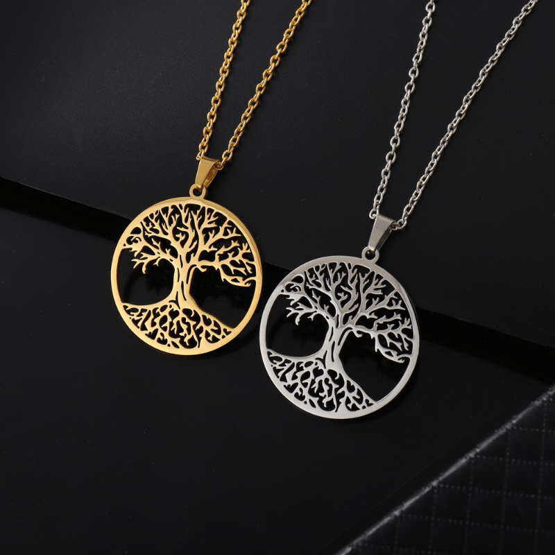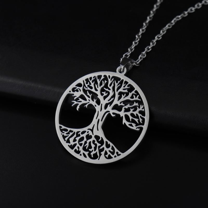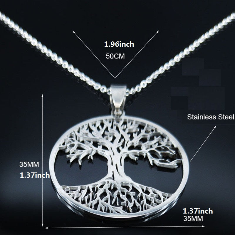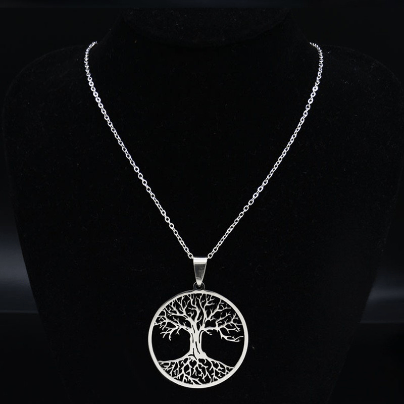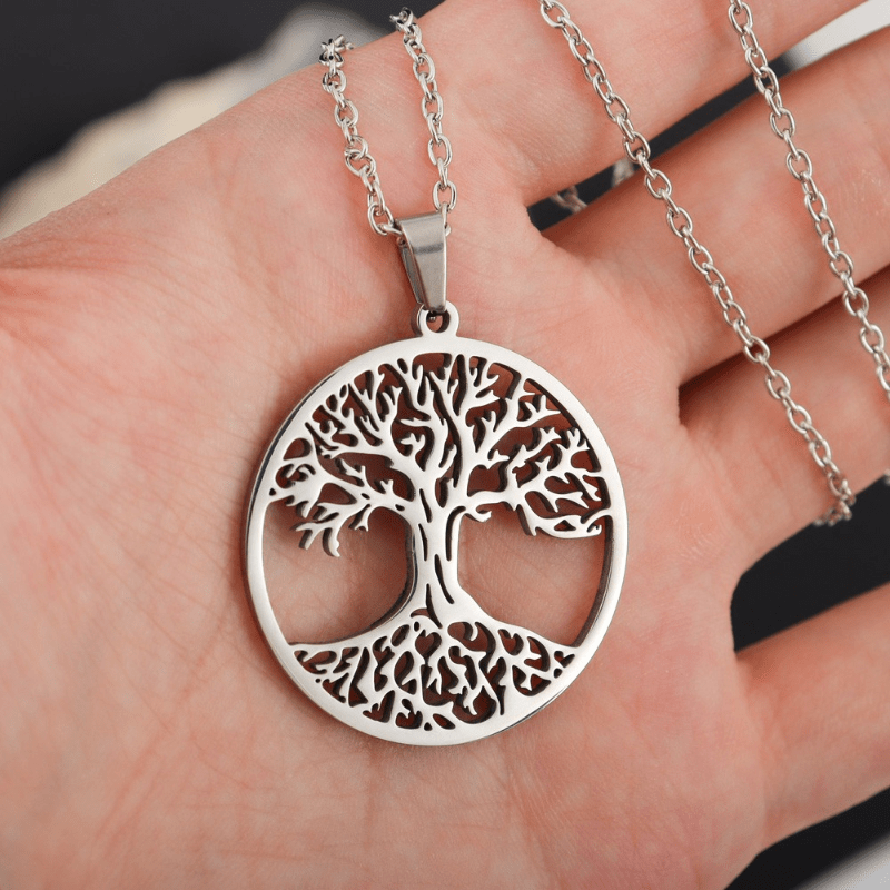 This stainless steel necklace features a Tree of Life amulet pendant, making it a great gift for men, couples, or women. It has a Viking-inspired design that adds a touch of rugged charm to any outfit.