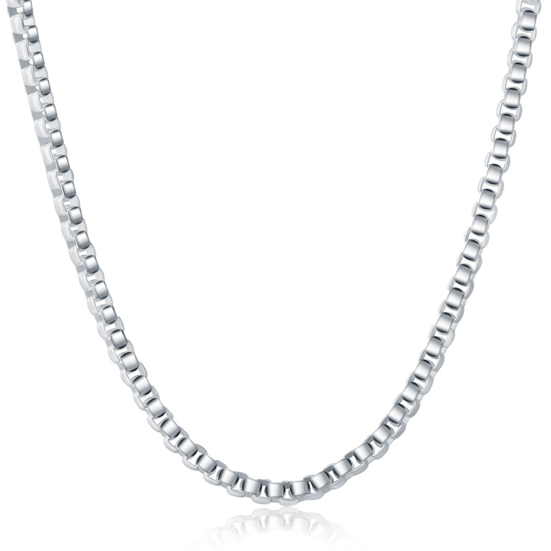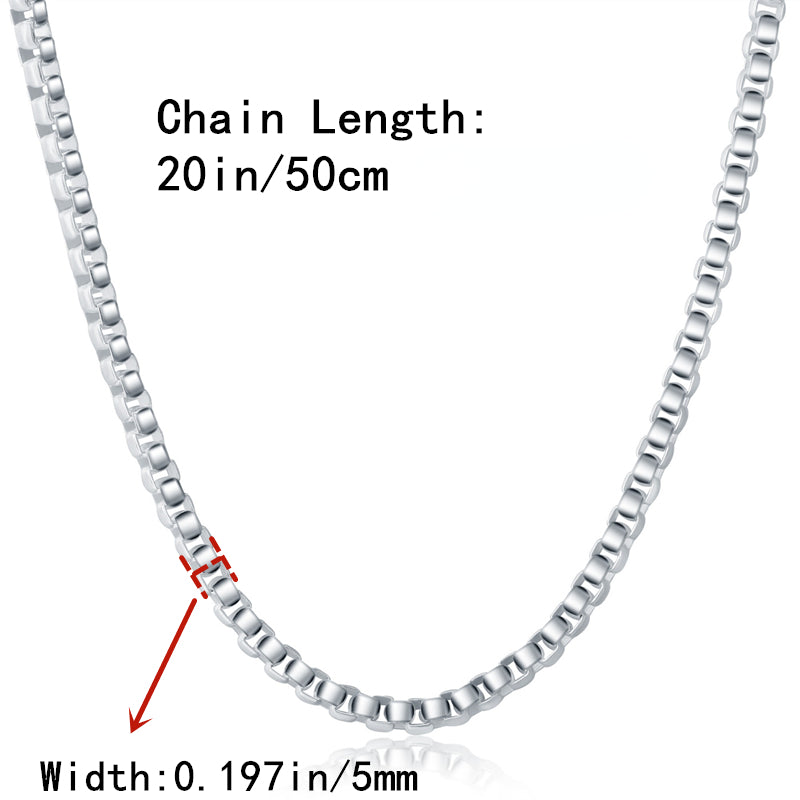 Men's 5mm Round Box Chain Necklace, Silvery Plated, Wedding Party Charm Jewelry