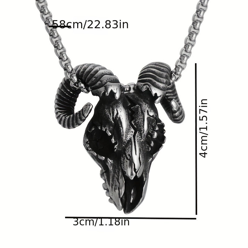 Add a touch of edgy style to your outfit with this vintage demon sheep head skull pendant necklace. Perfect for parties, this gothic punk accessory is a great gift for men.