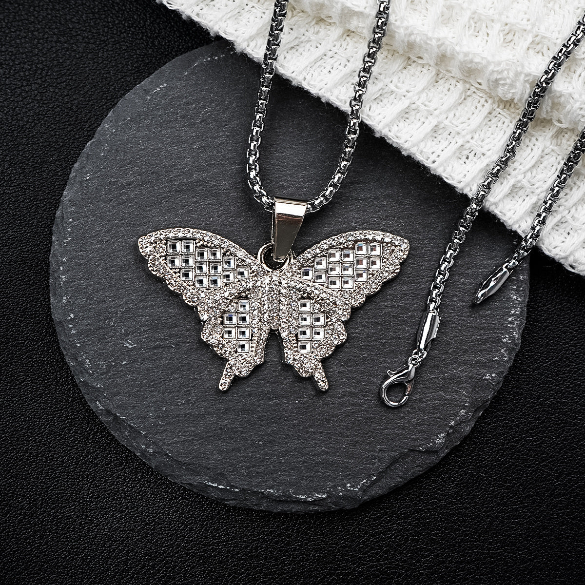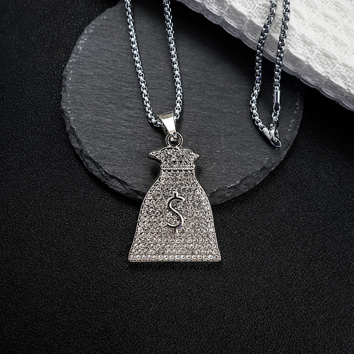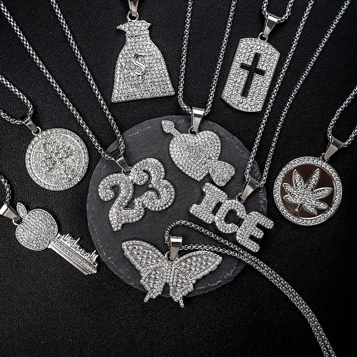 Add a touch of bling to your look with this hip hop pendant necklace featuring multiple alloy rhinestone pendants.