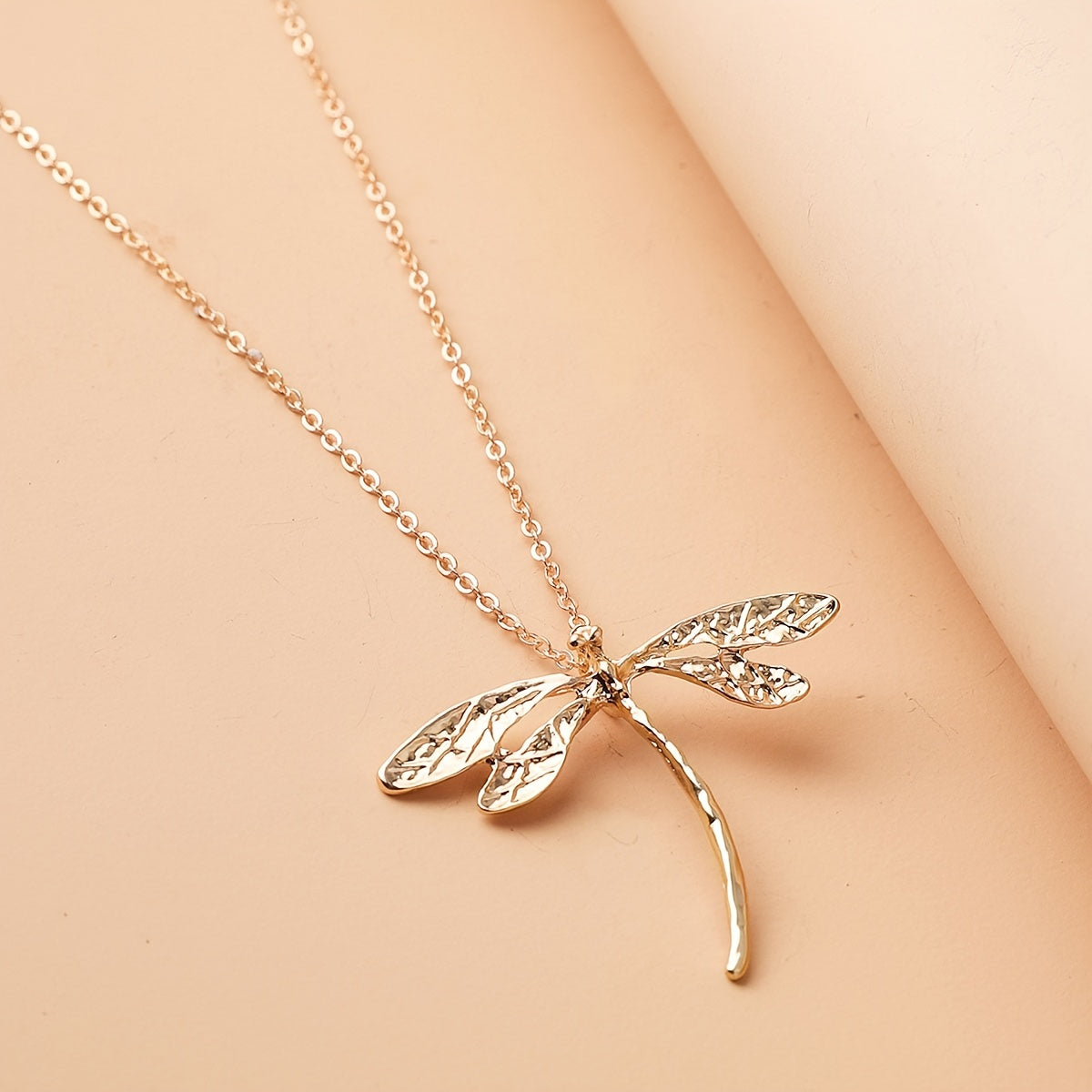 This stylish necklace features a dragonfly pendant made of zinc alloy, perfect for casual wear.