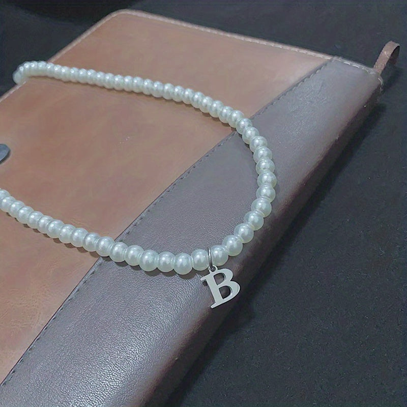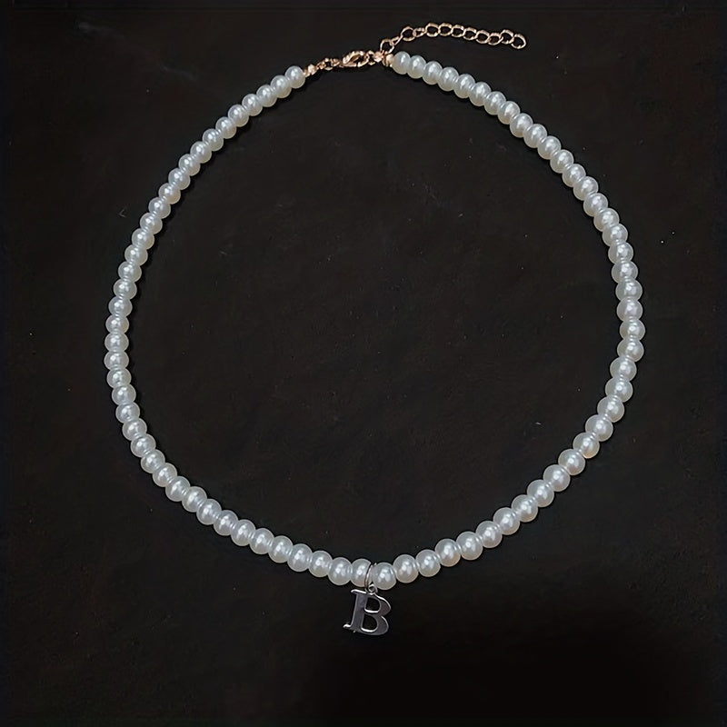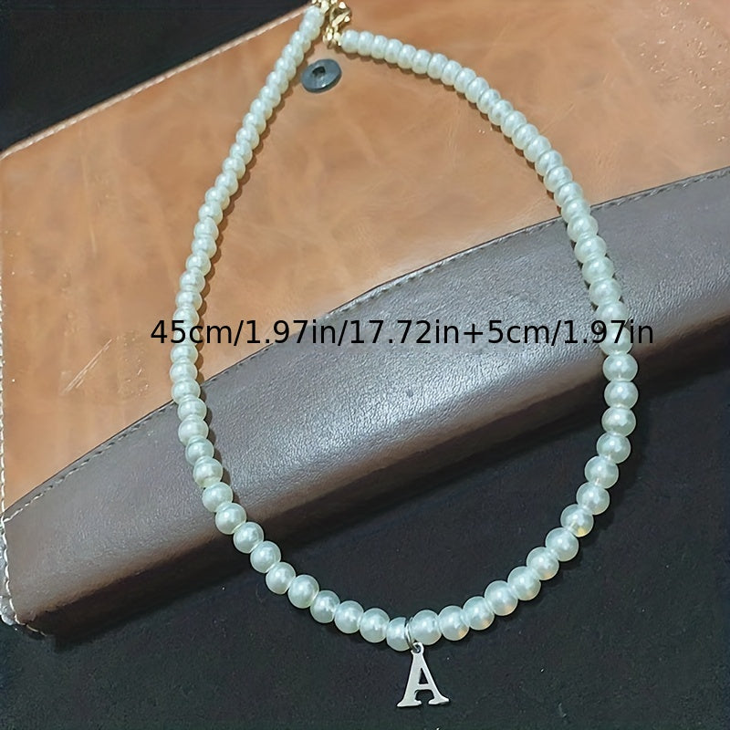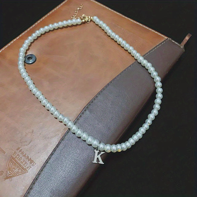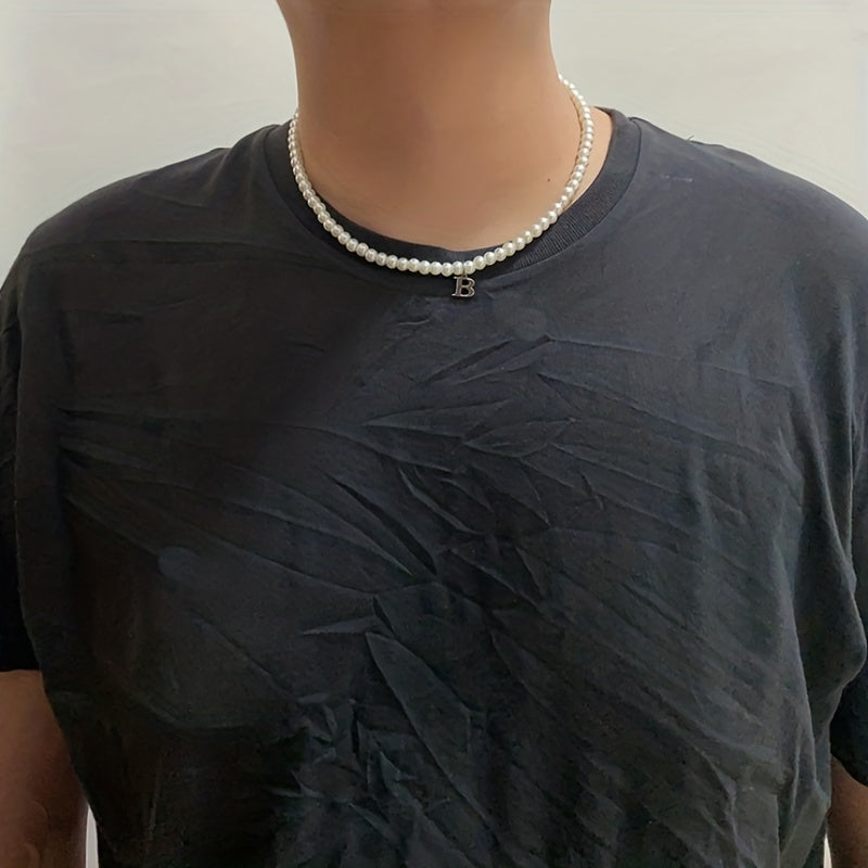 Men's Pearl Letter Necklace Beaded Choker Chain