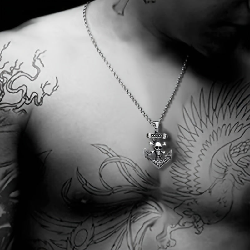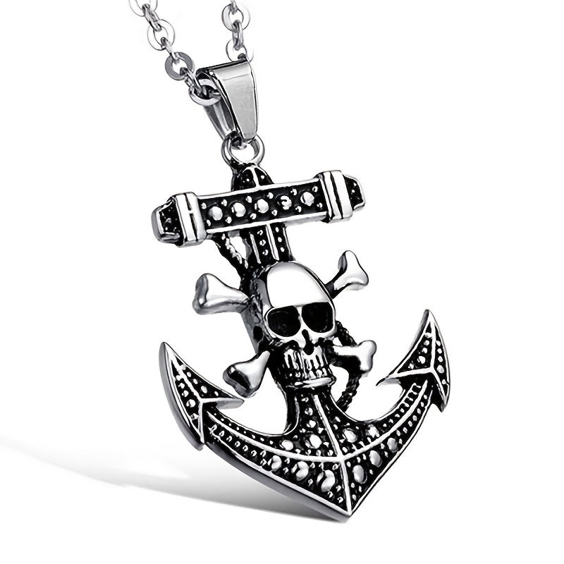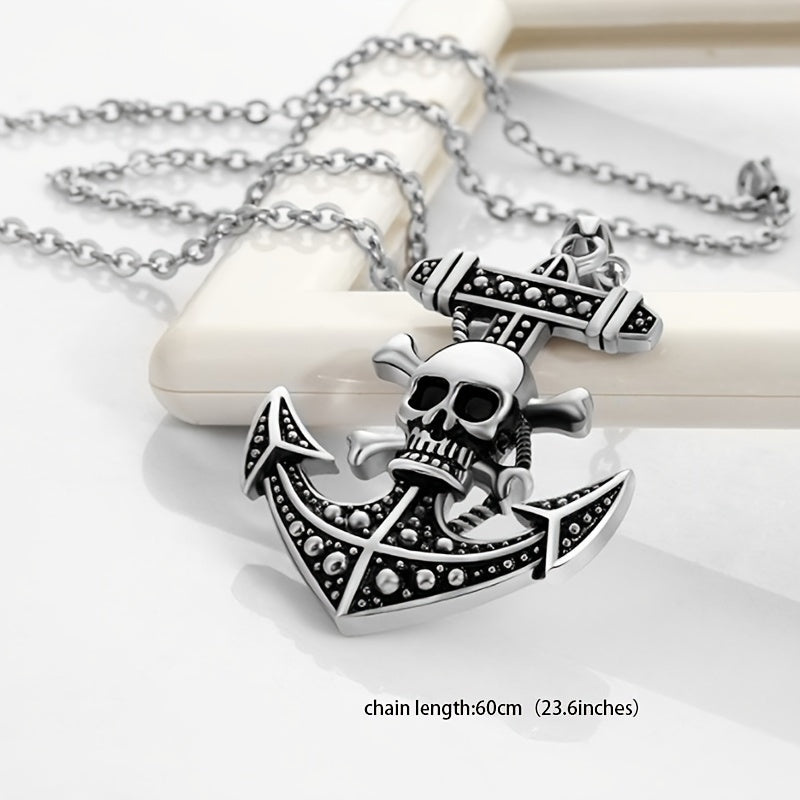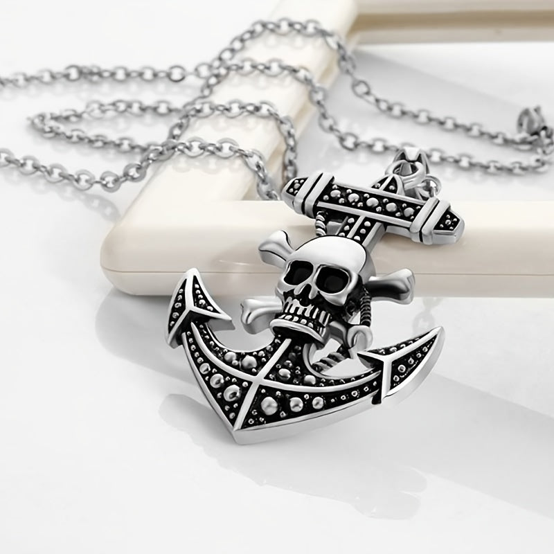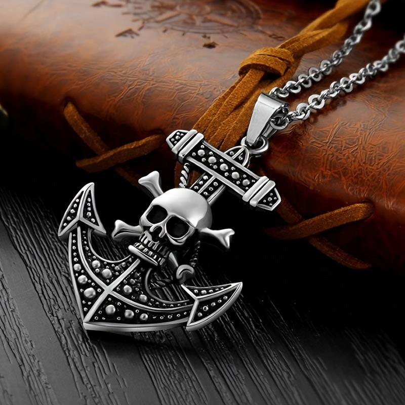 This men's necklace features a pirate king skull boat anchor pendant, making it a stylish and unique accessory.