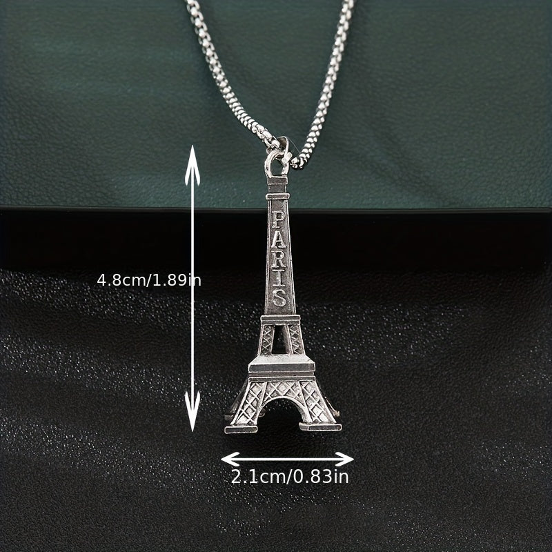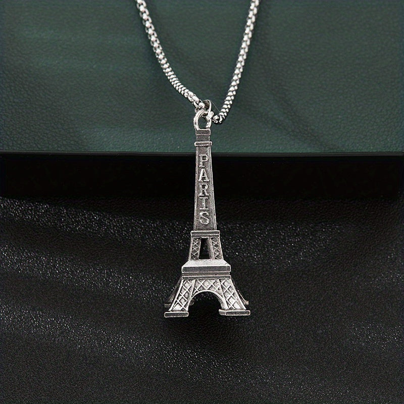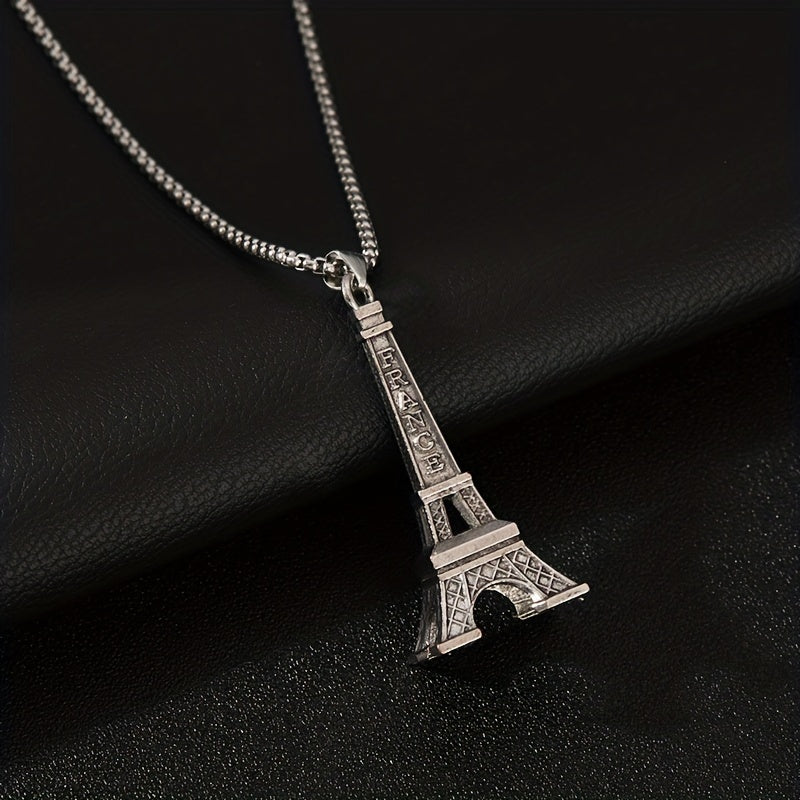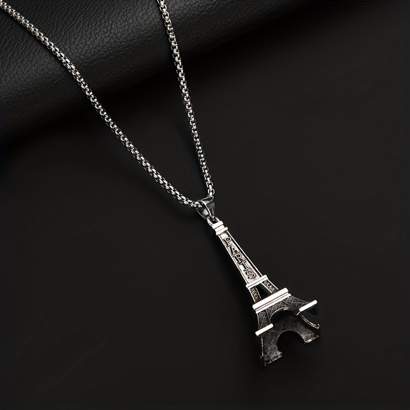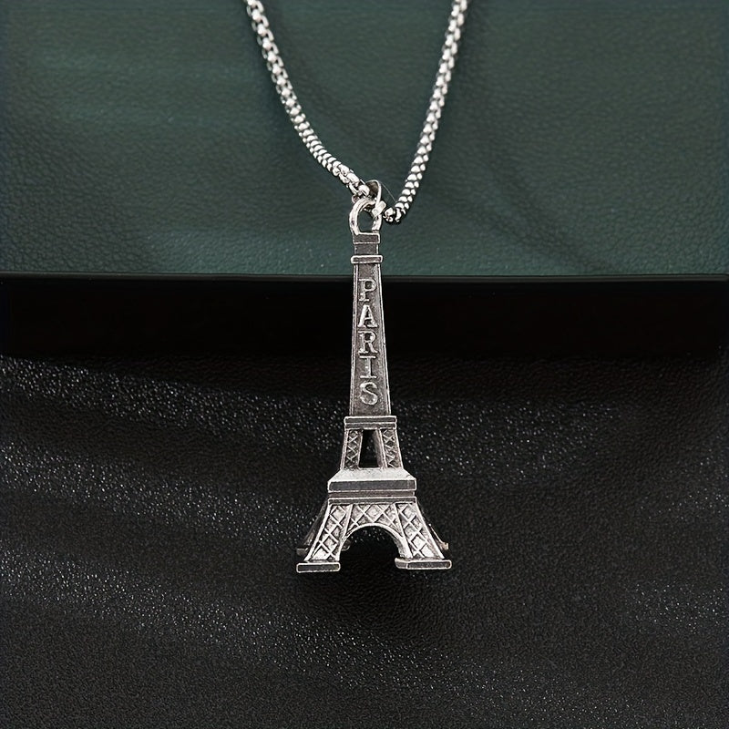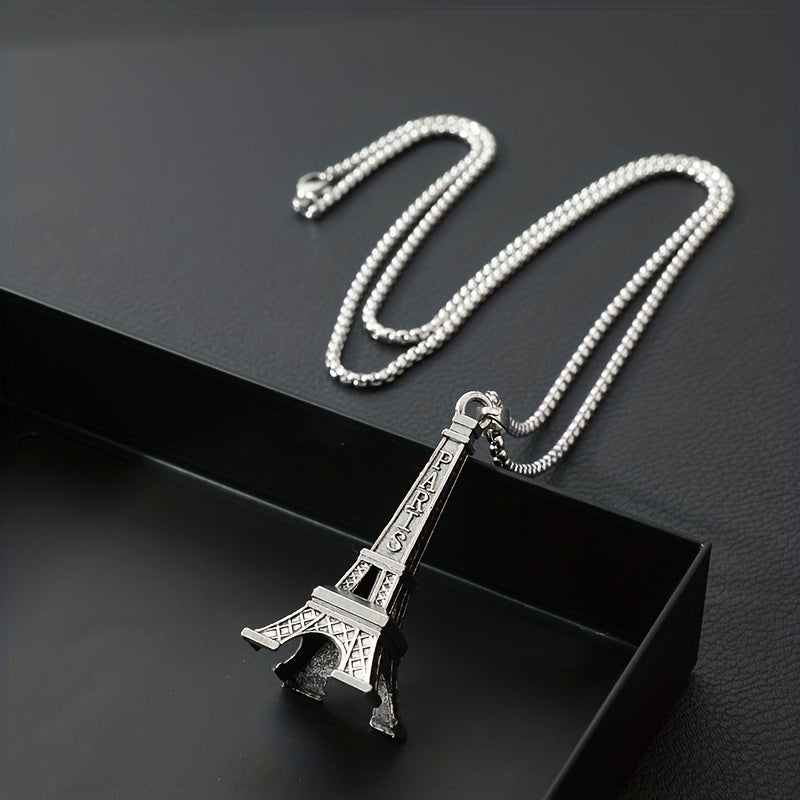 This vintage-inspired Eiffel Tower necklace is designed for men with a hip hop flair. Made of silver, it adds a cool touch to any outfit.