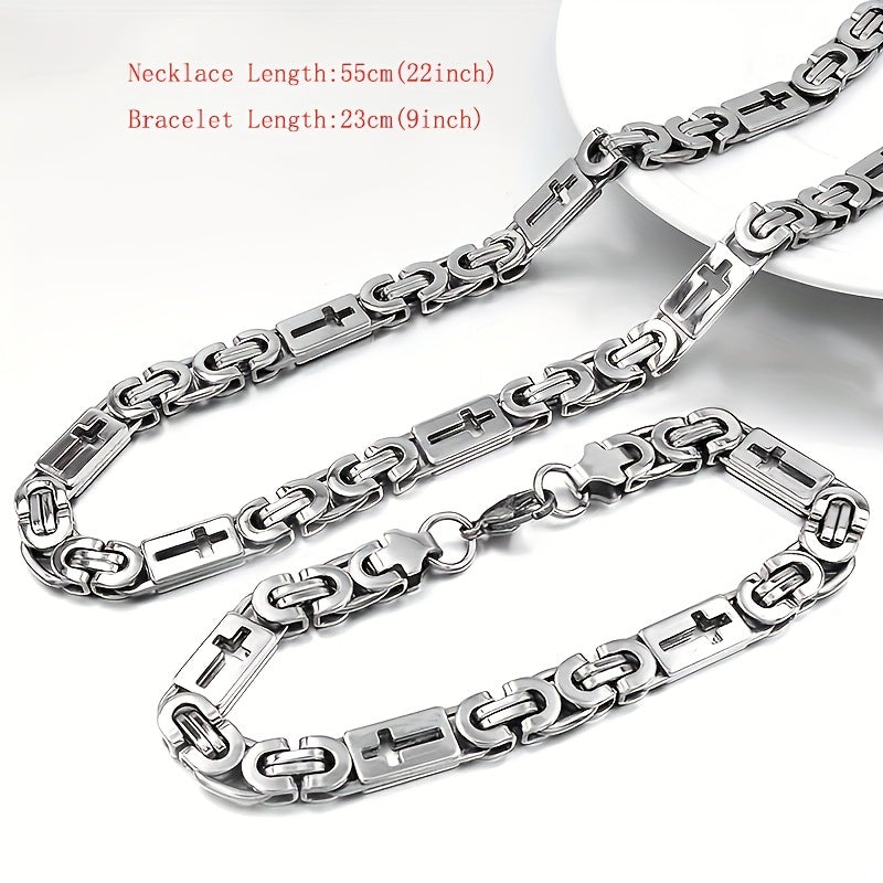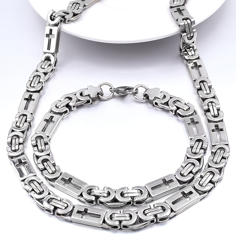 This men's cross necklace is made of stainless steel, featuring a hollow long chunky design. It is perfect for casual wear.