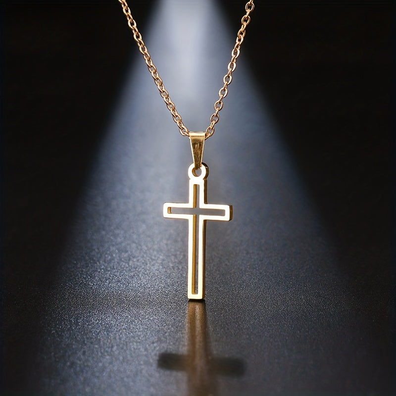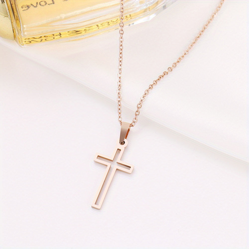 This exquisite necklace features a golden and rose golden chain with a cross pendant. Ideal for a stylish and spiritual look.