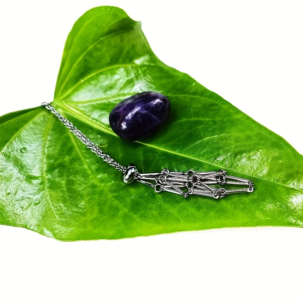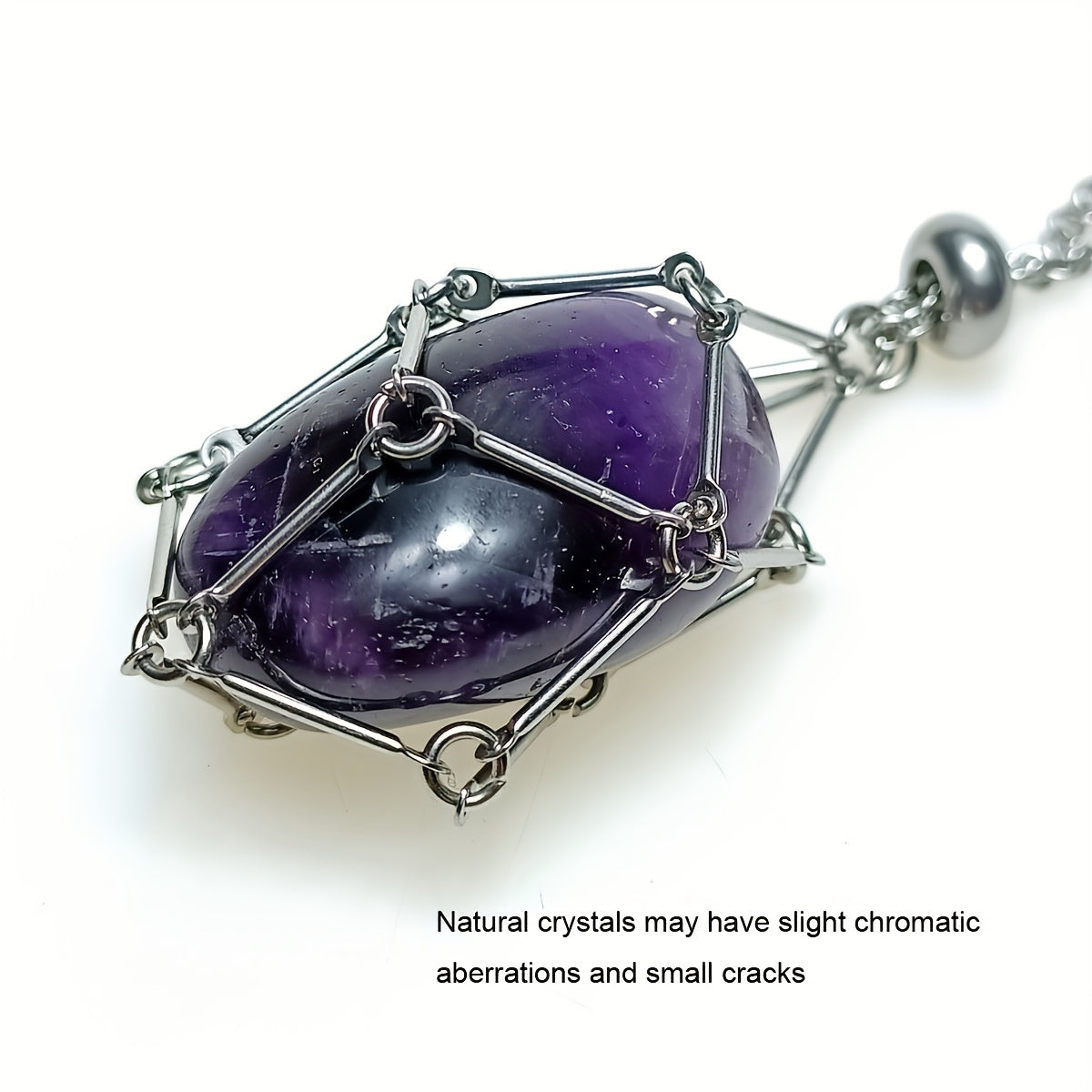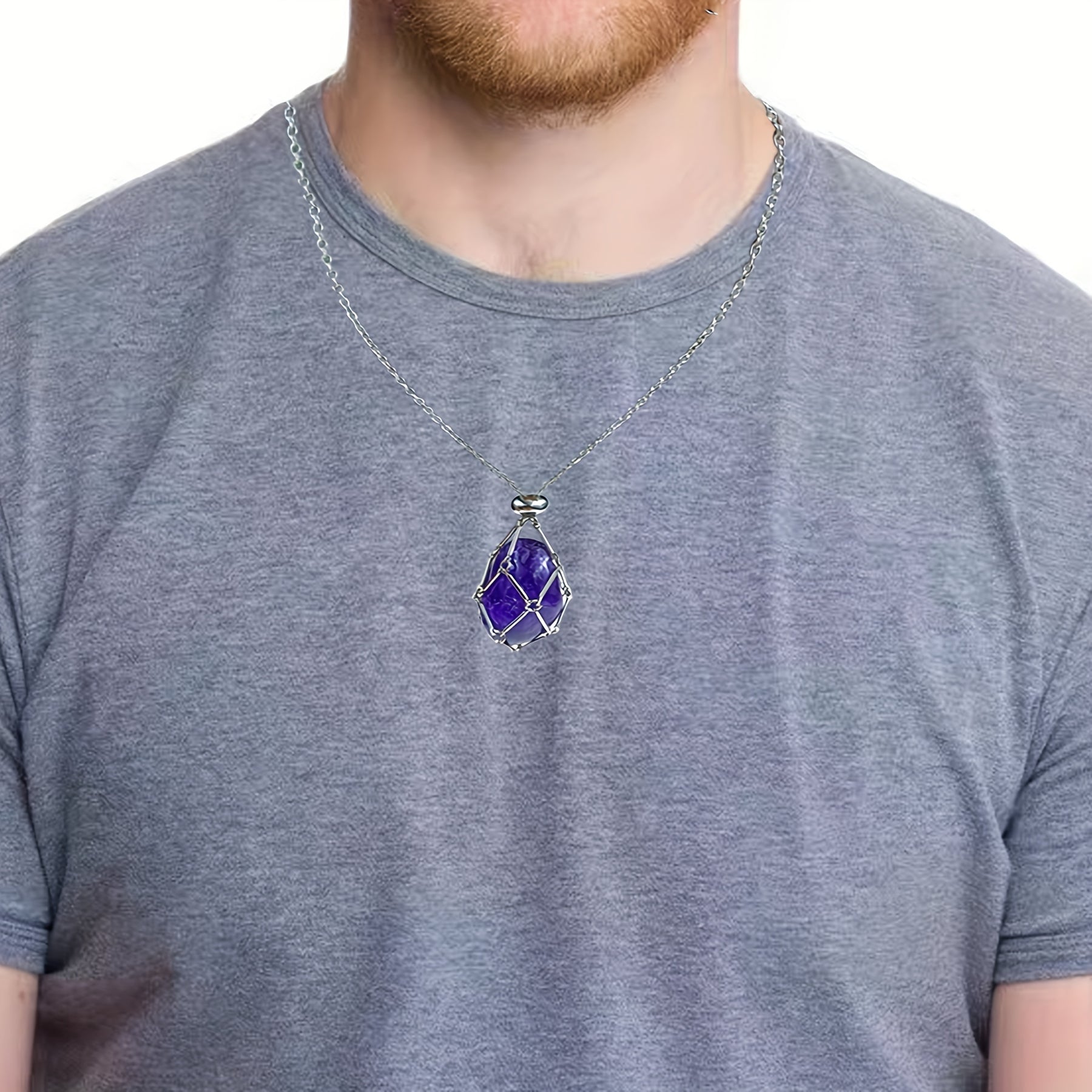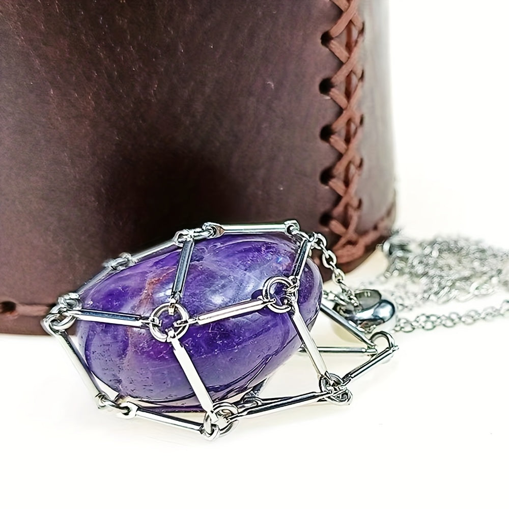 This stylish necklace features a stainless steel cage pendant that holds a beautiful stone crystal. The necklace has an adjustable length for a comfortable fit, making it ideal for both men and women.