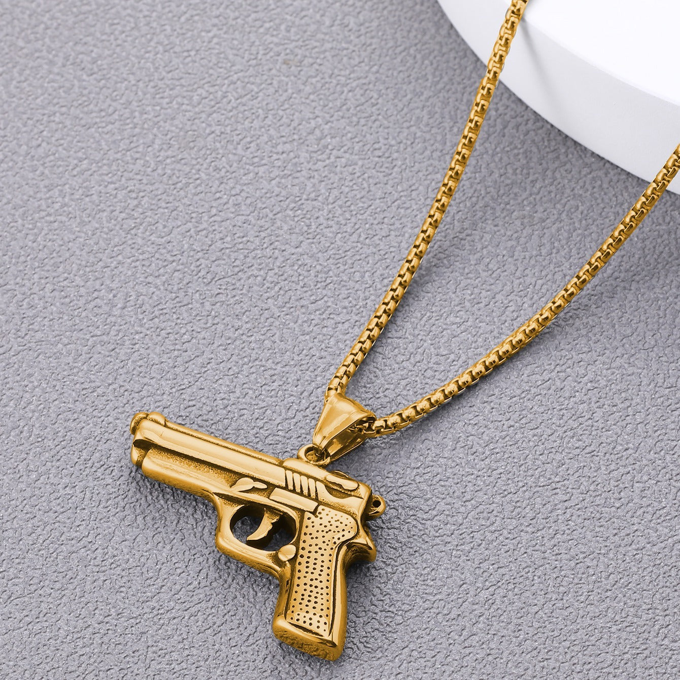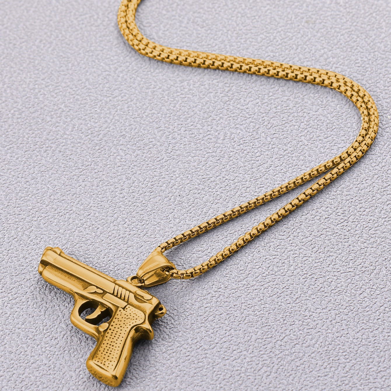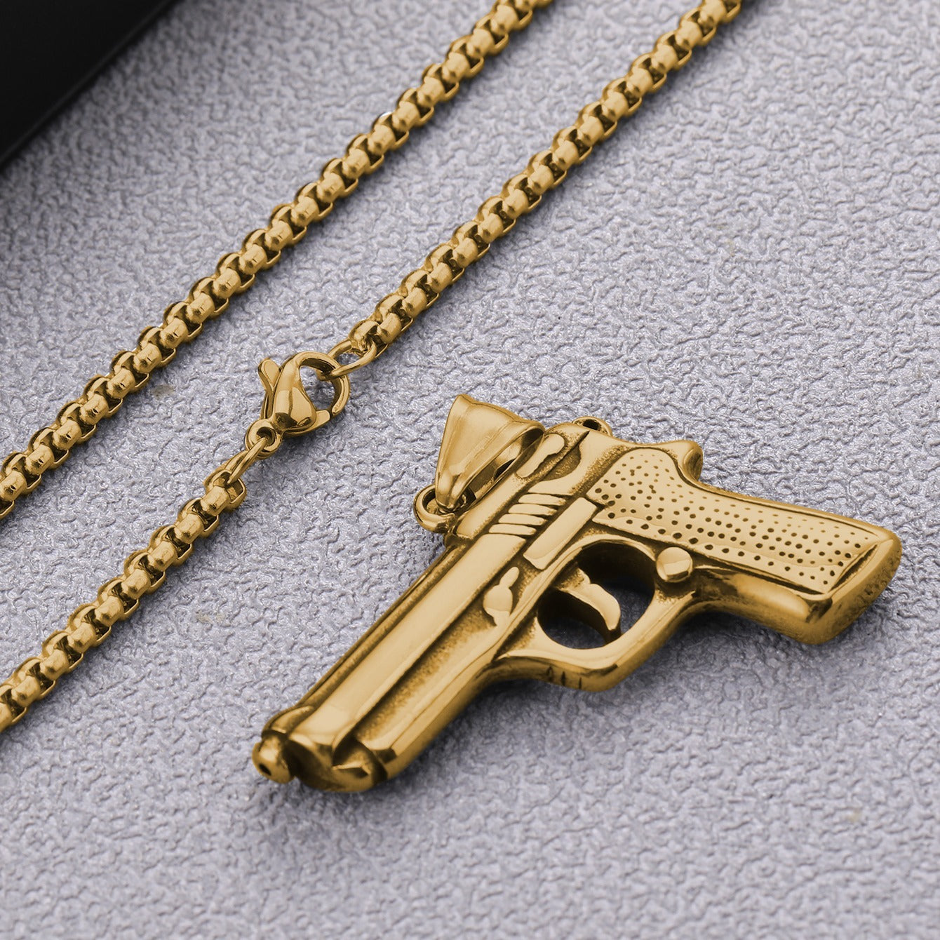 Enhance your style with this men's stainless steel necklace featuring a golden pendant.