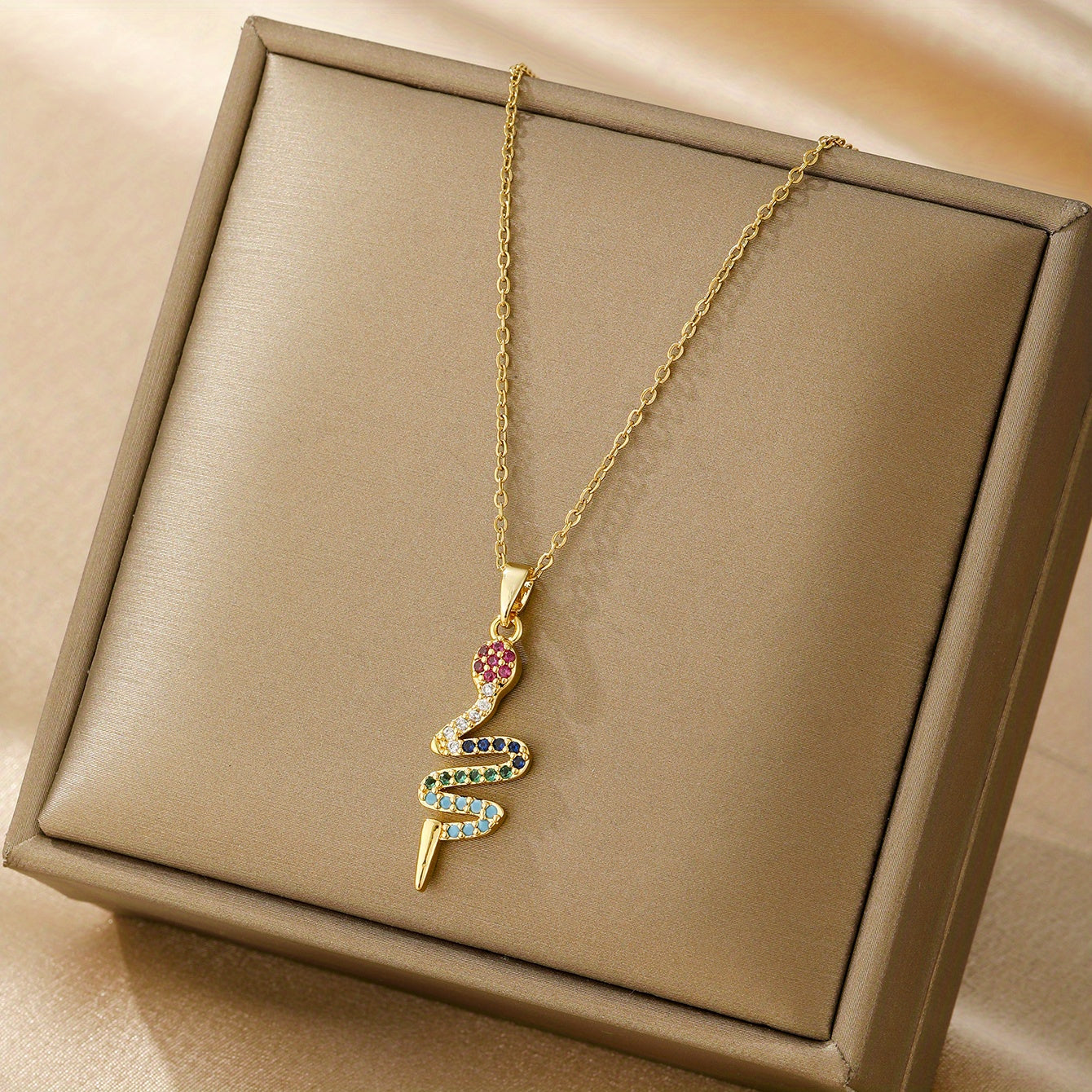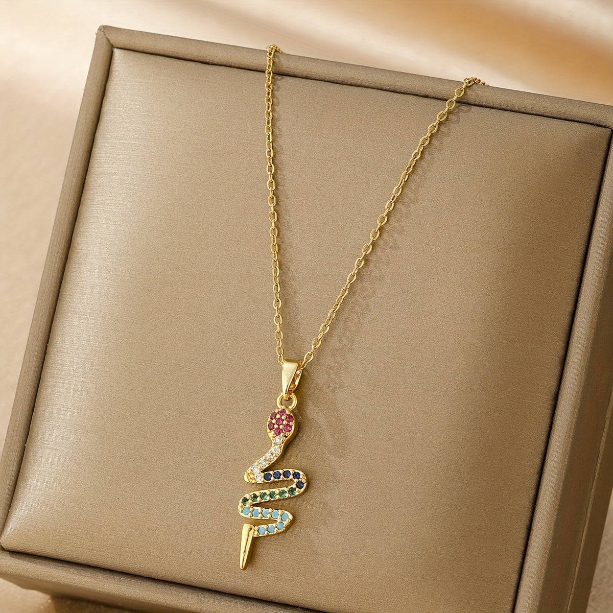 This stylish stainless steel necklace set with rhinestone snake design is a perfect gift for men, couples, and women. The set includes two necklaces.