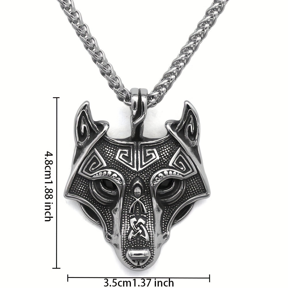 Men's Viking Fenrir Wolf Head Pendant Necklace