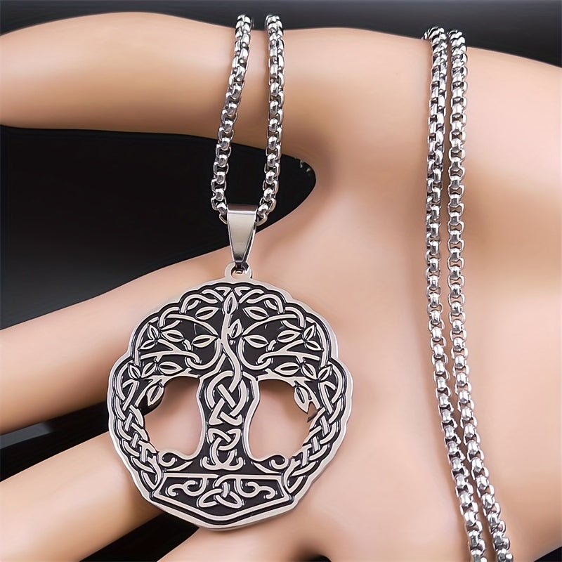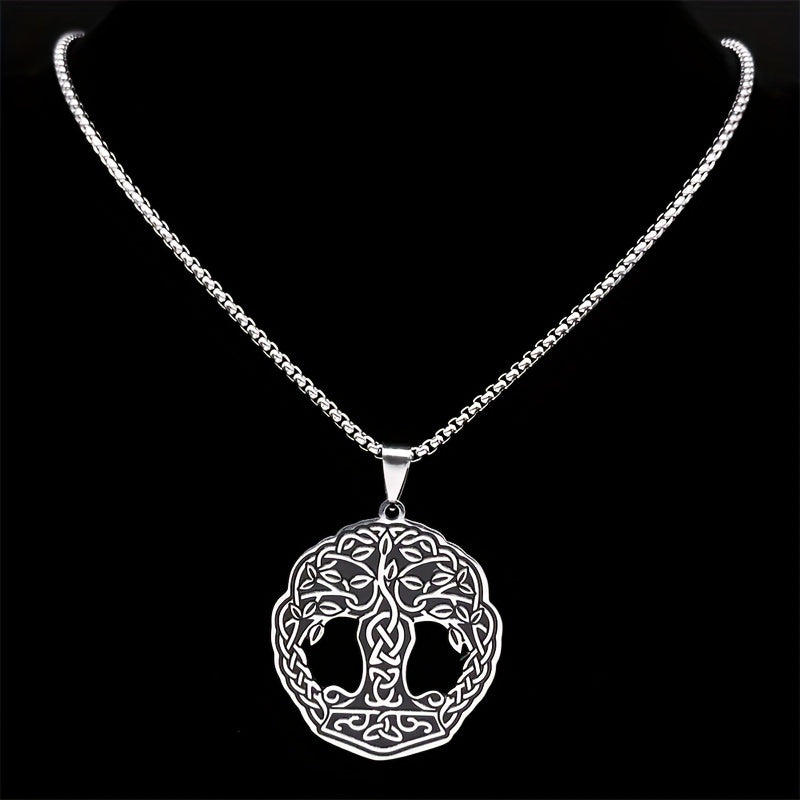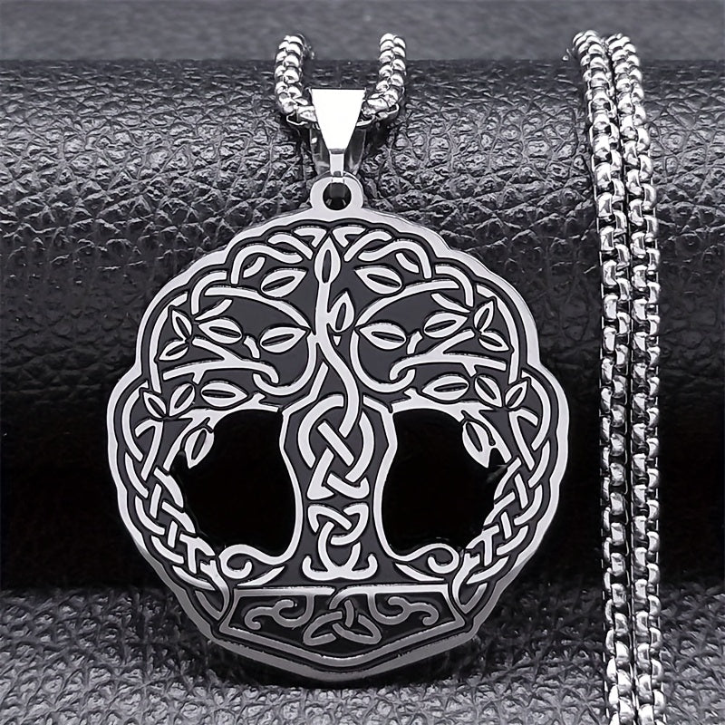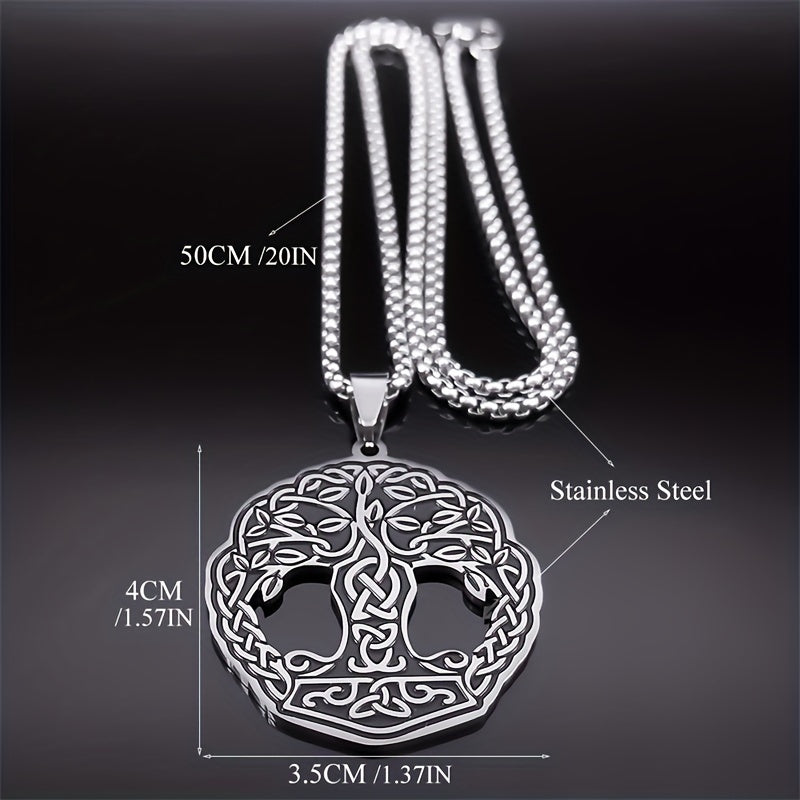 This men's Viking necklace features a Tree of Life pendant made of stainless steel, perfect for a hip hop style. The amulet jewelry design adds a touch of uniqueness and style.