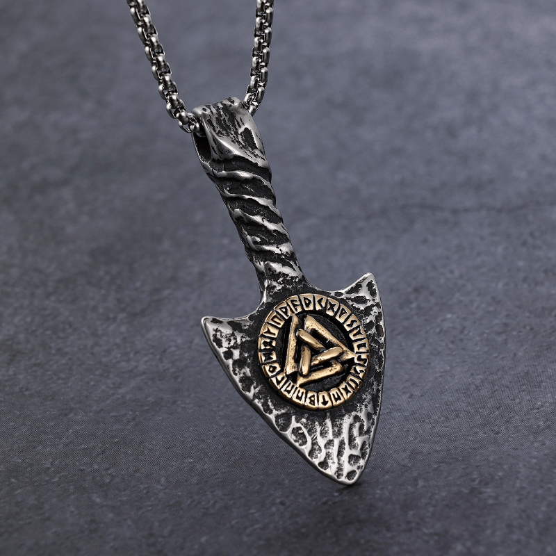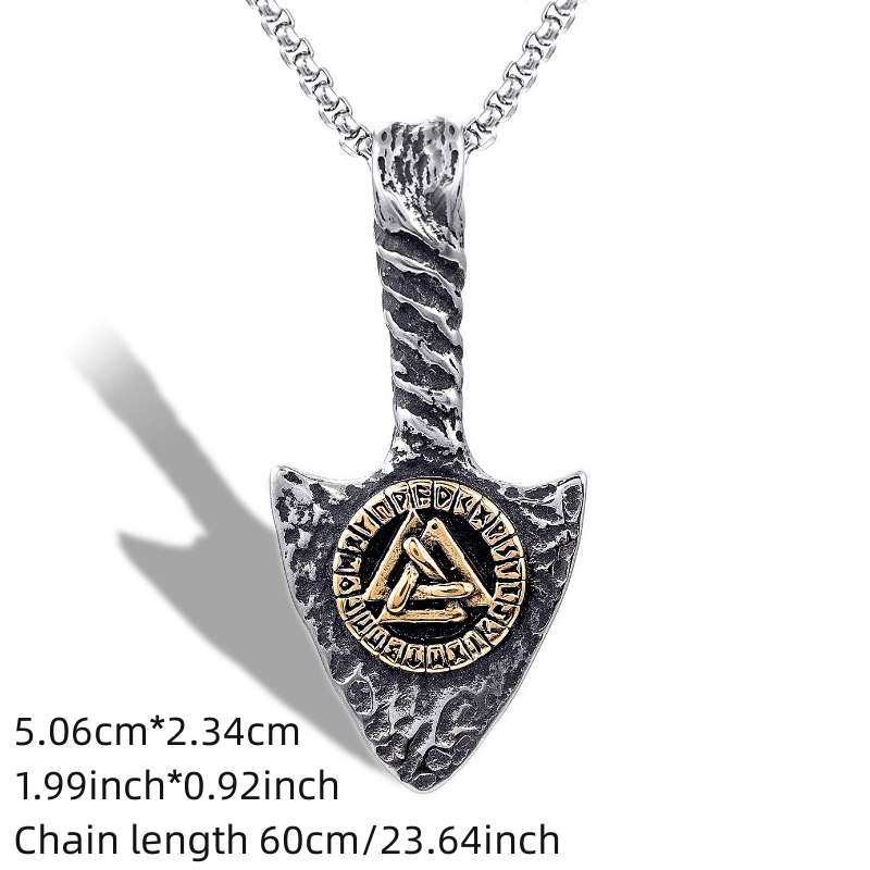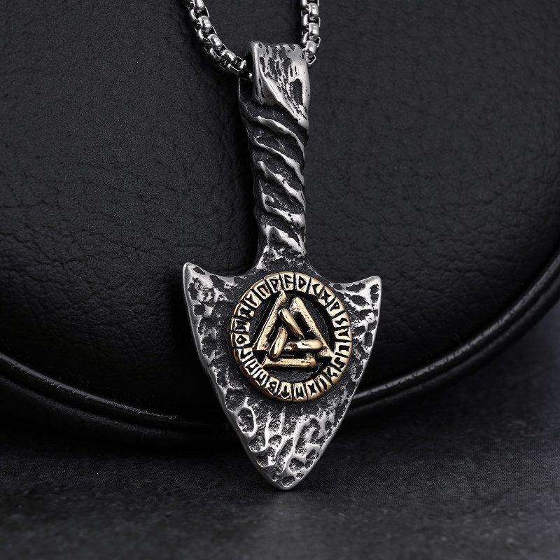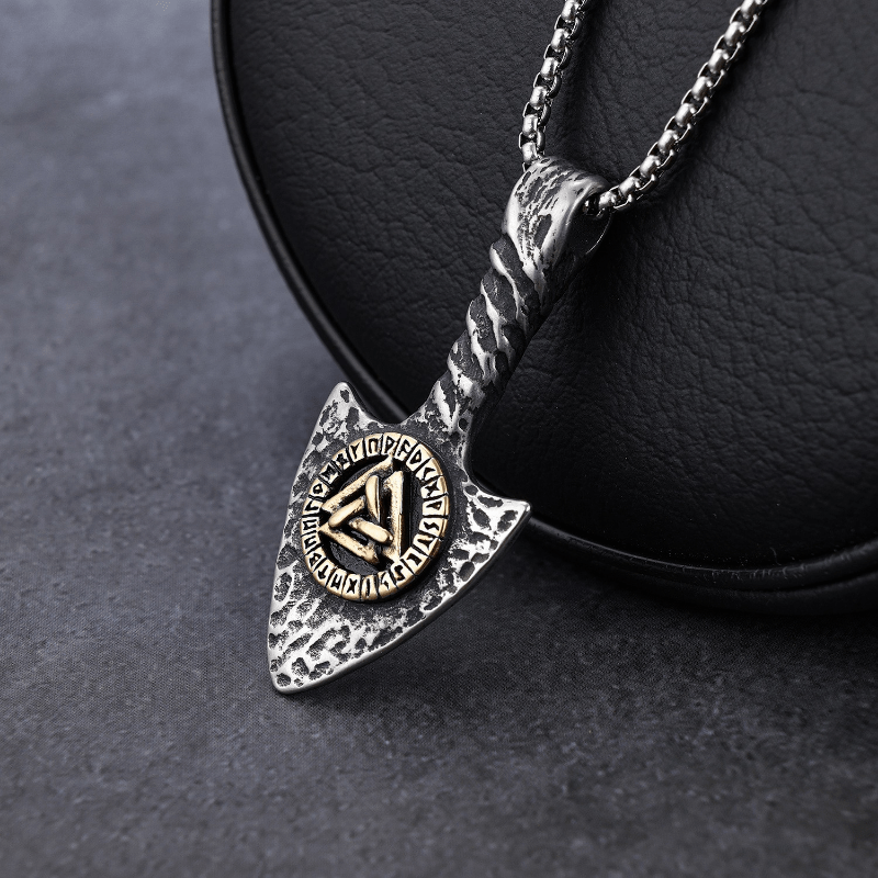 This necklace features a spear pendant with runes, made of stainless steel. Perfect gift for men, couples, or women who appreciate Nordic style jewelry.