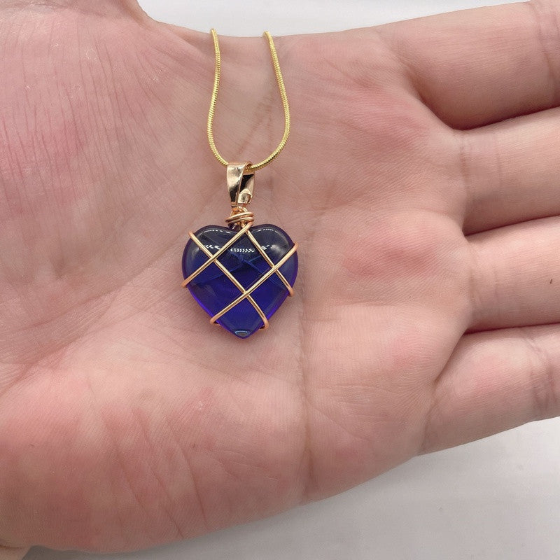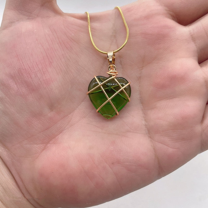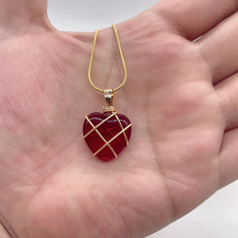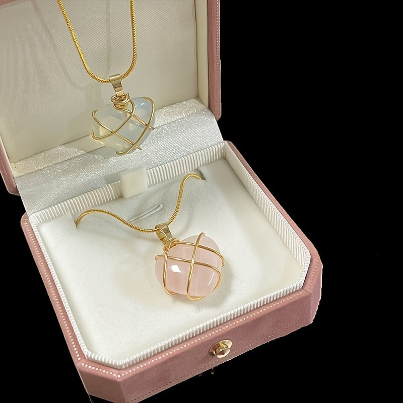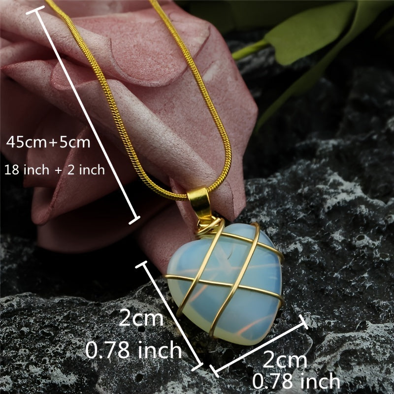 This pendant couple necklace features a metal wrapped love heart crystal stone design that symbolizes love and connection. Perfect for couples or loved ones.