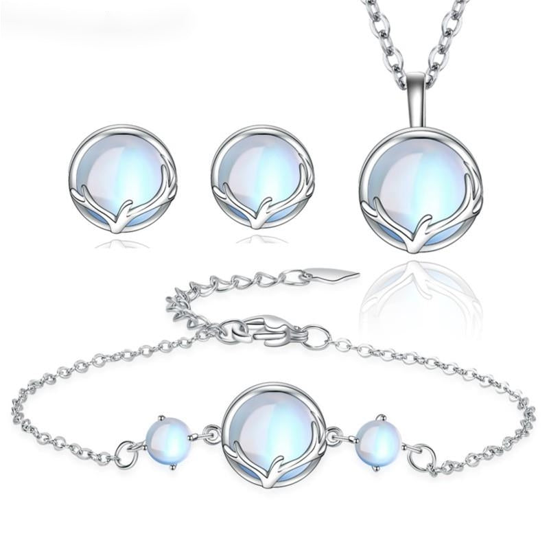 Moonstone Stud Earrings Necklace Bracelet Set Sweet Jewelry For Women