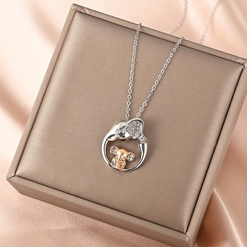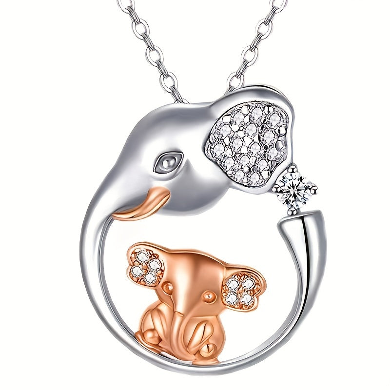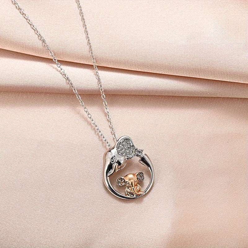 This beautiful necklace features a mother elephant holding a heart-shaped pendant with the letter charm. It is a symbol of love and motherhood, perfect for gifting to a special mom.