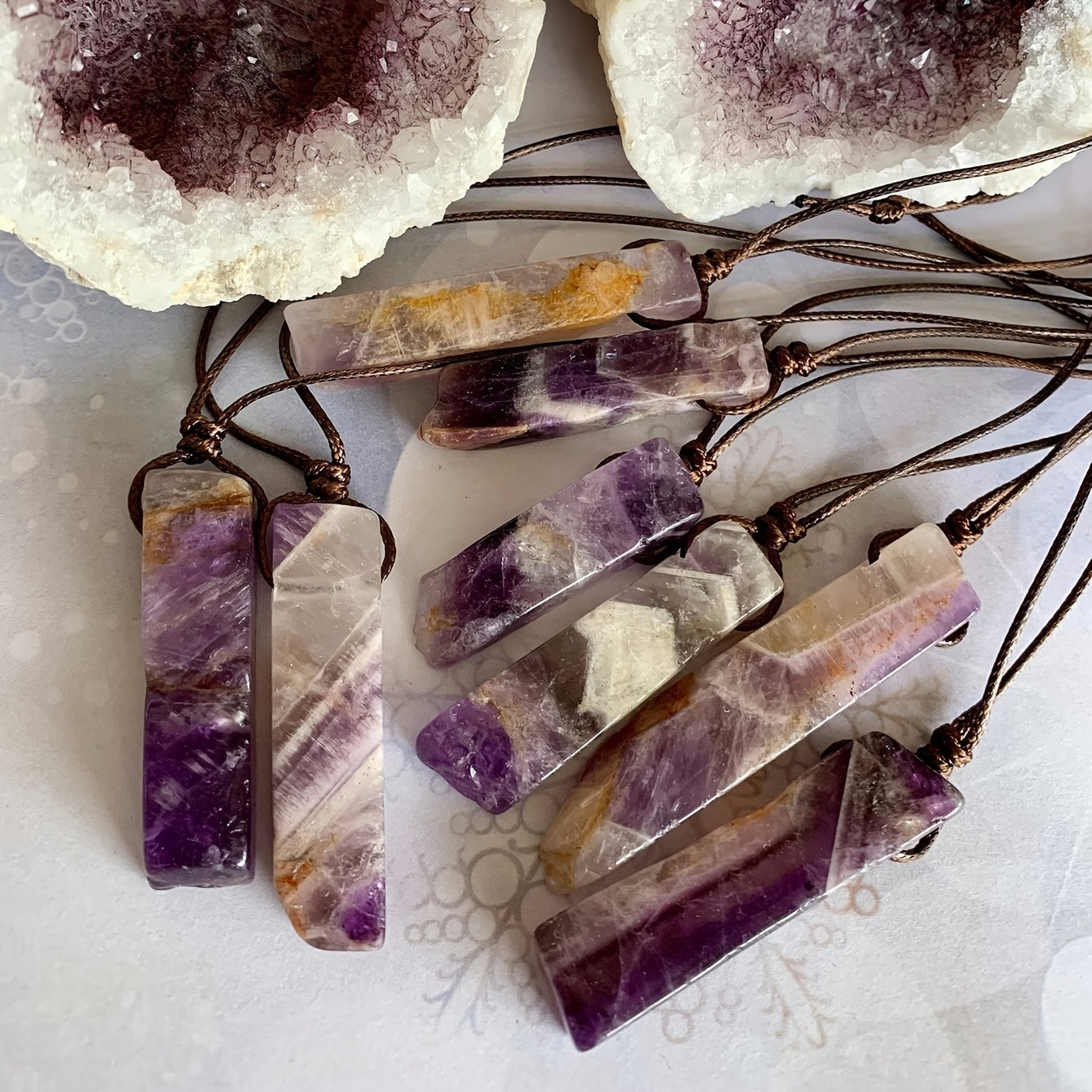 This raw amethyst crystal necklace is a perfect healing accessory. The adjustable cord pendant makes it suitable for men.