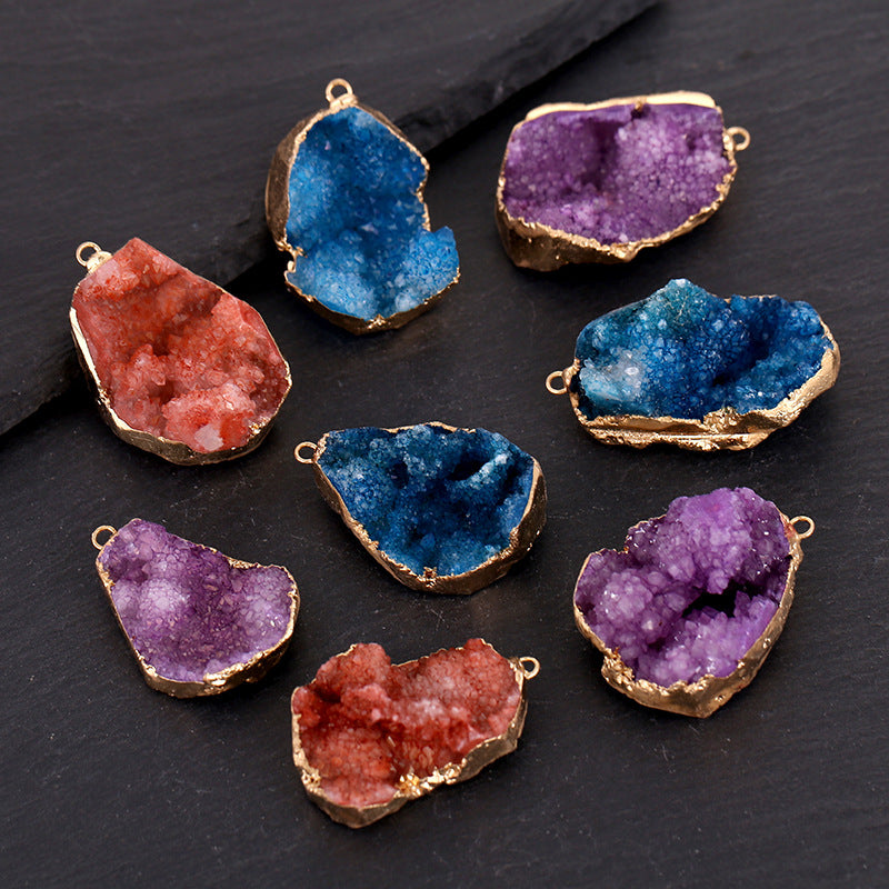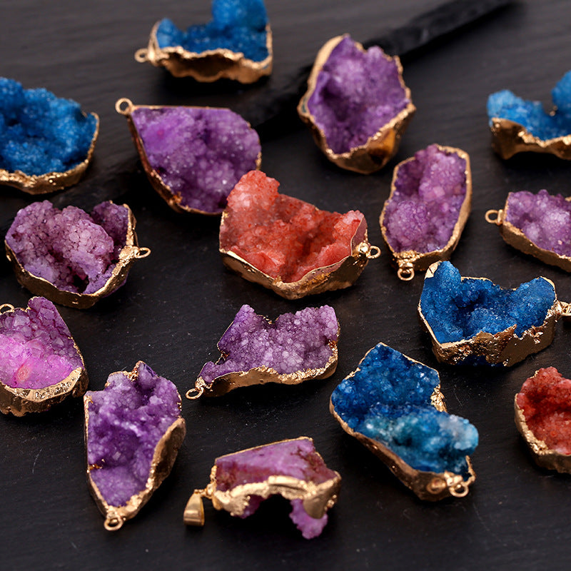 This natural crystal pendant features an irregular shape with a golden edge, perfect for creating unique jewelry pieces. A beautiful addition to your collection of gems and crafts.