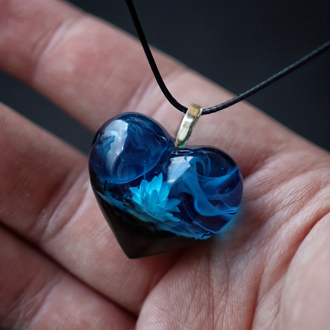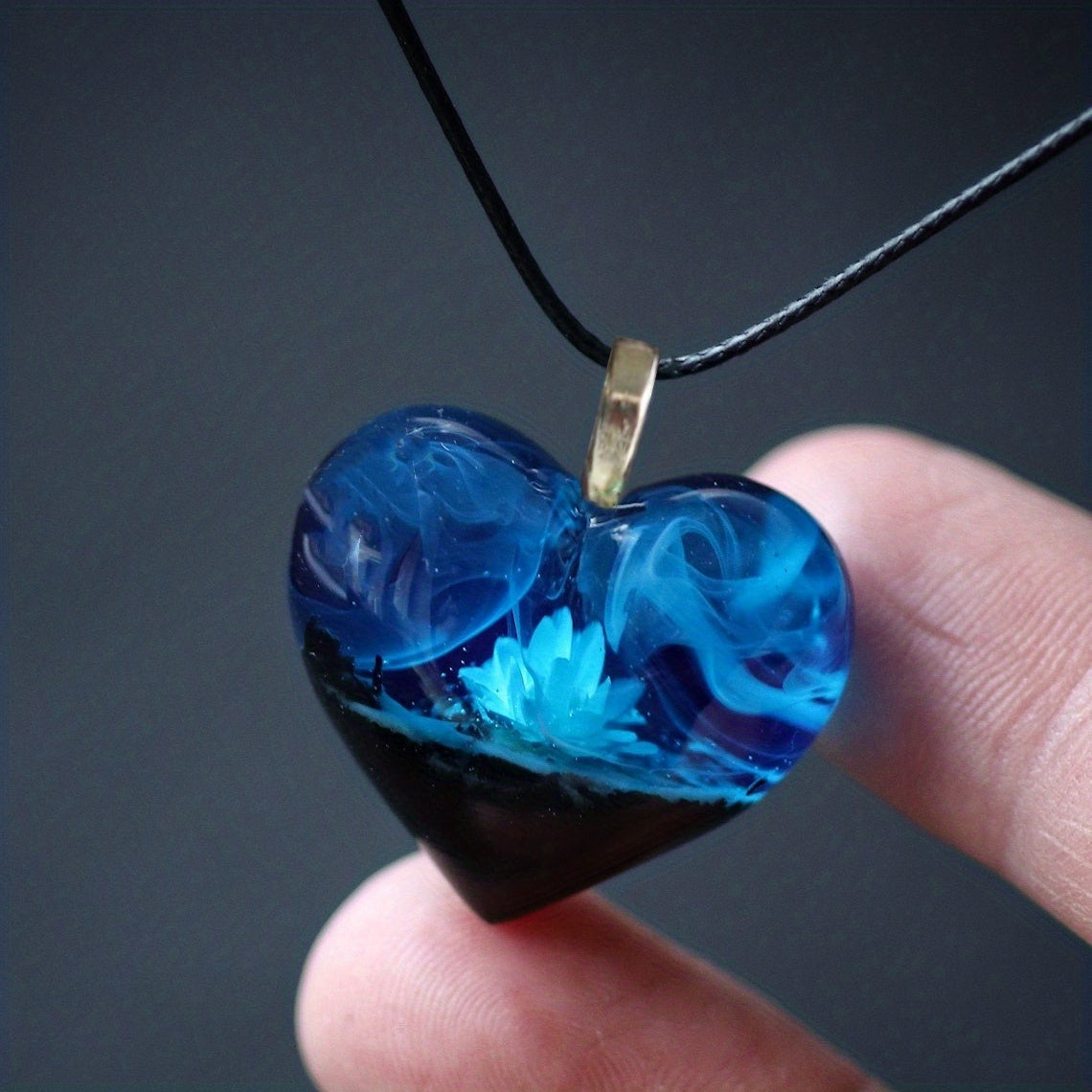 Add a touch of nature and romance with this stunning pendant necklace featuring a heart shape design with a beautiful scenery of mountains, rivers, and starry sky. Perfect for men who love the great outdoors.