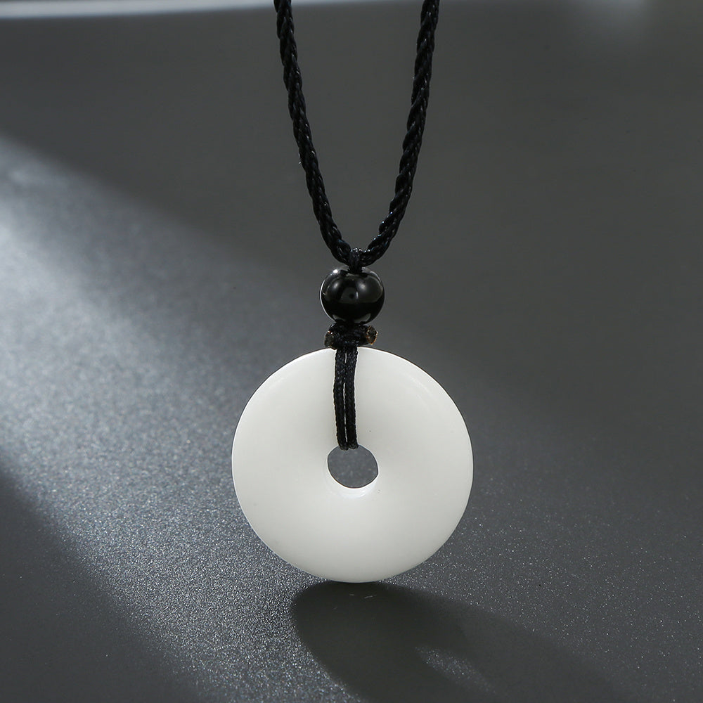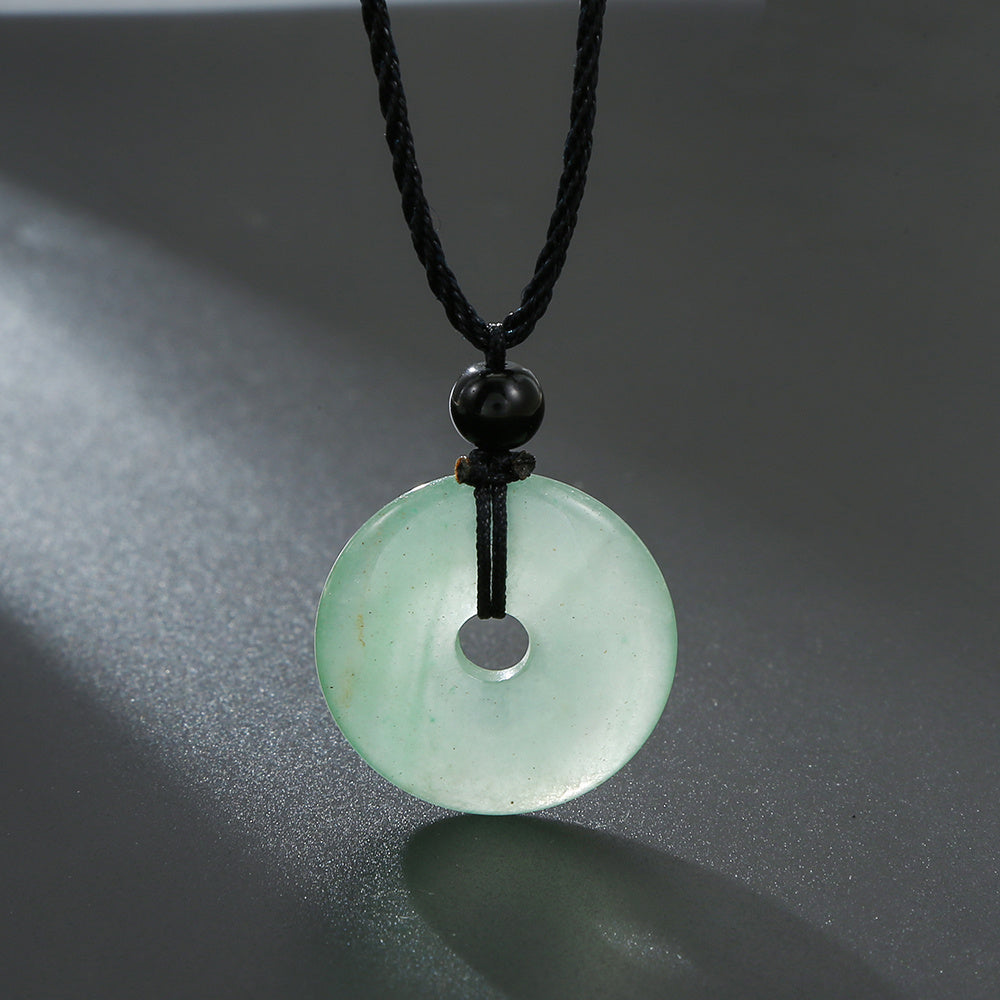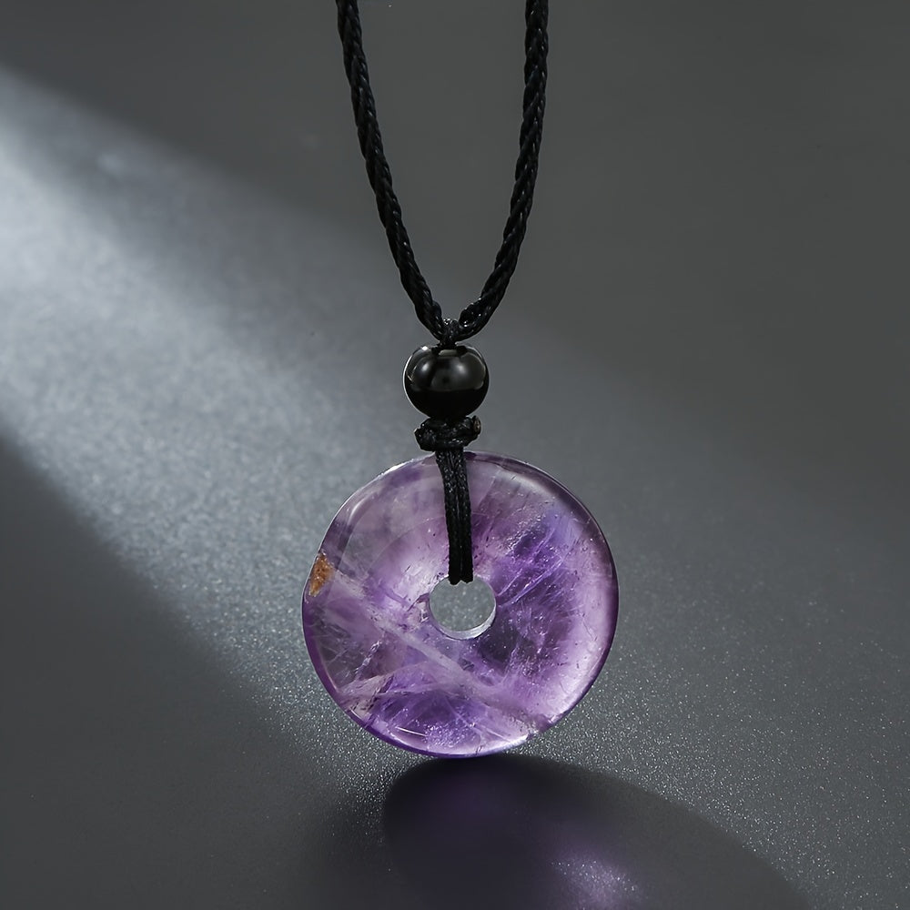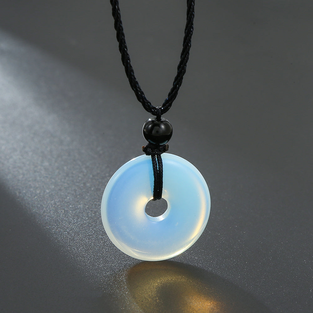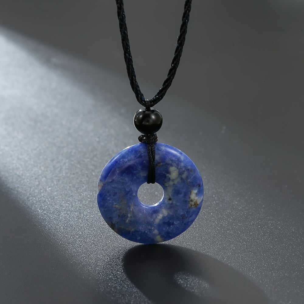 This braided necklace features a peace buckle and is made of natural stone for a unique and stylish look.
