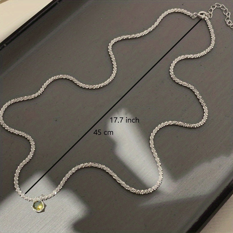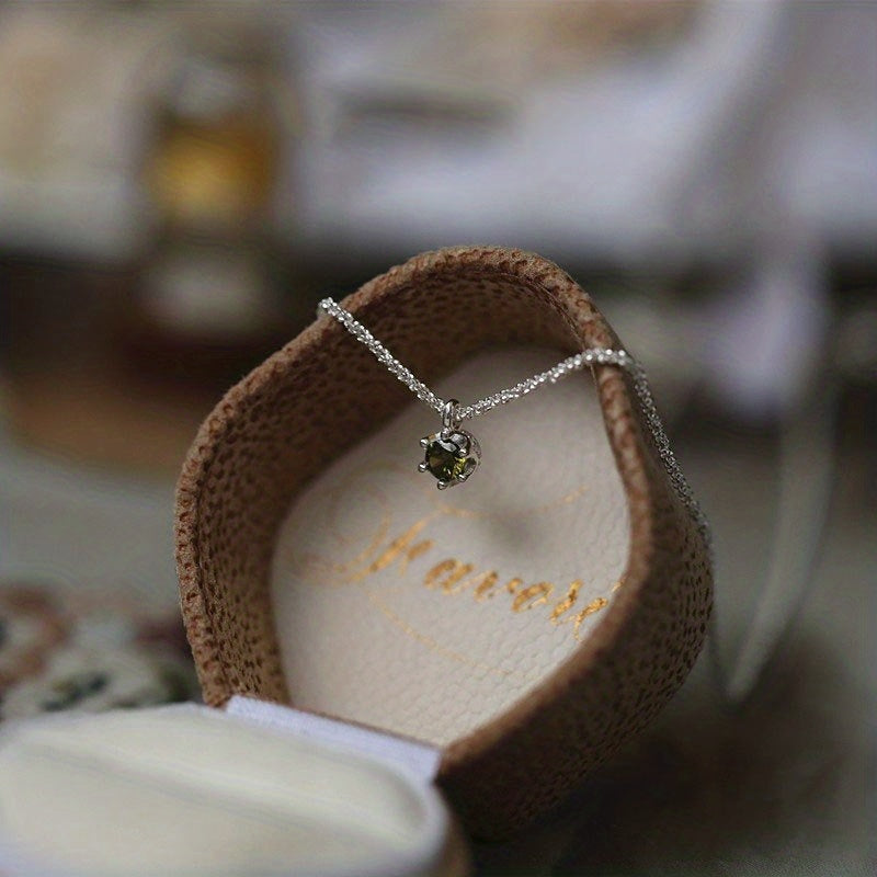 Elegant olive green gemstone solitaire necklace made of 925 silver. Perfect for weddings and bridal occasions.
