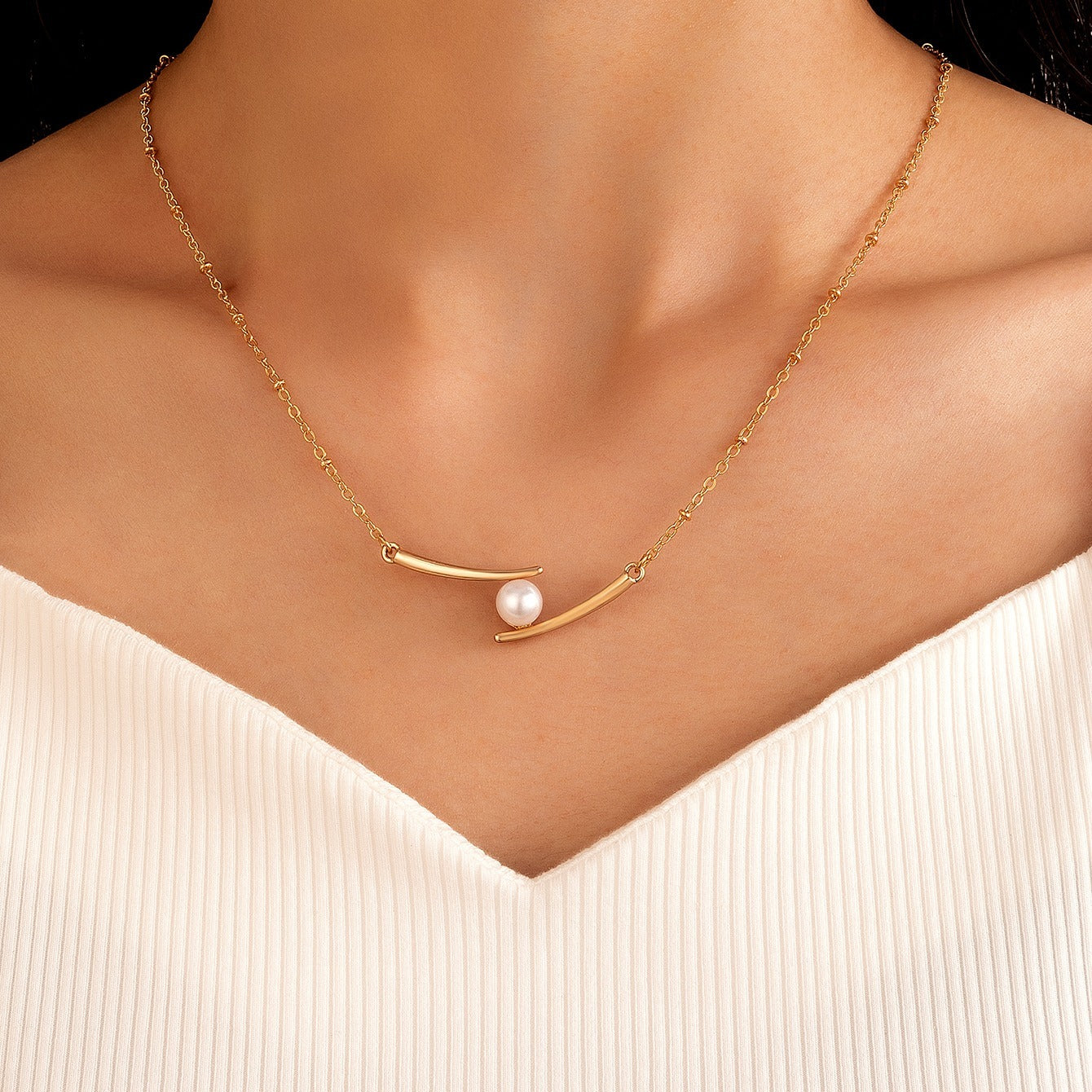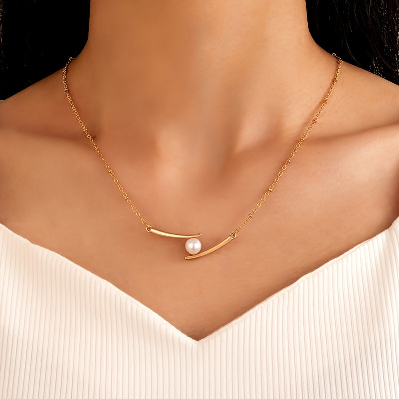 This dainty necklace features a faux pearl pendant on a delicate chain, perfect for adding a touch of sweetness to your look.