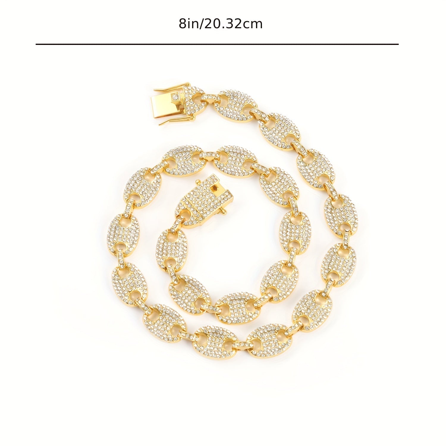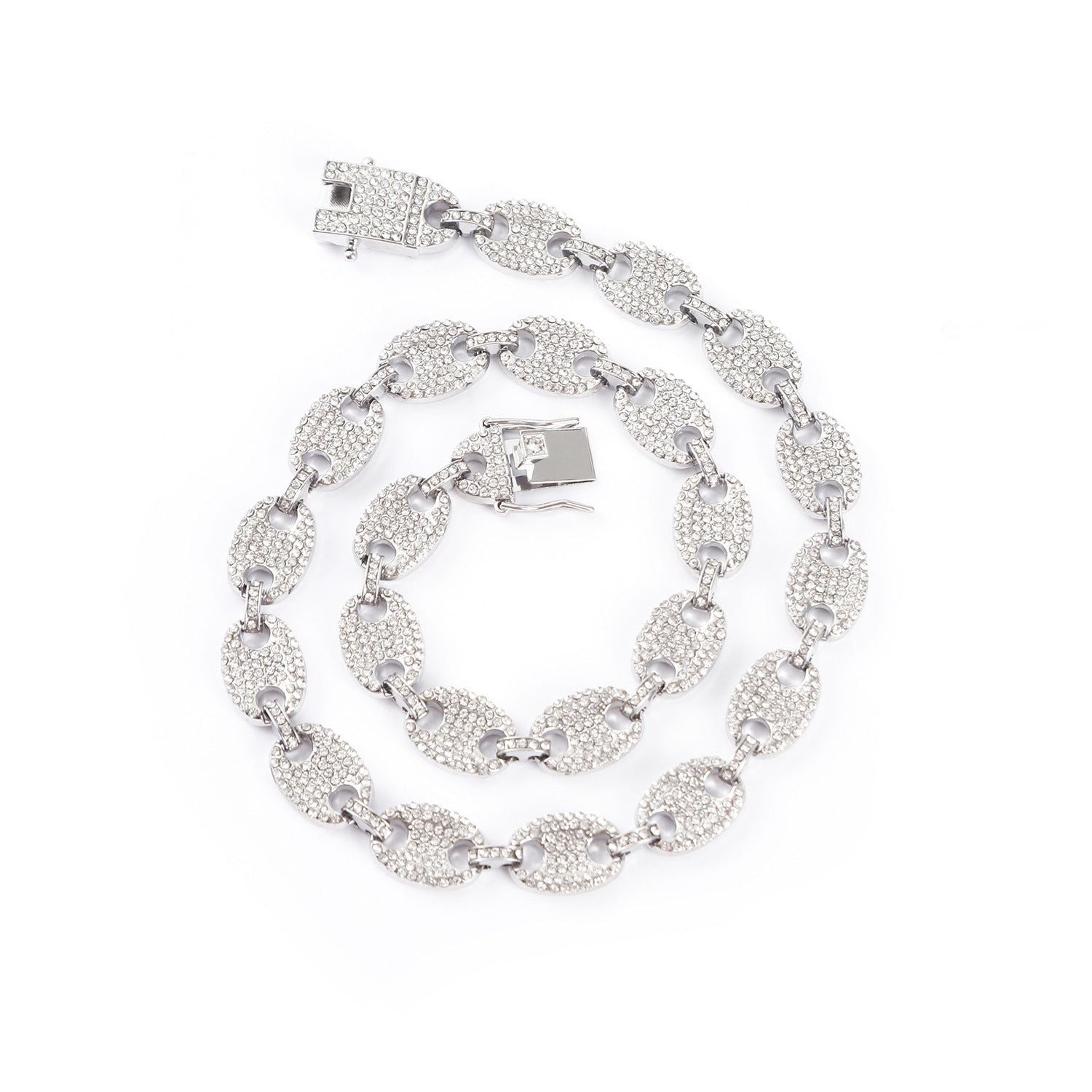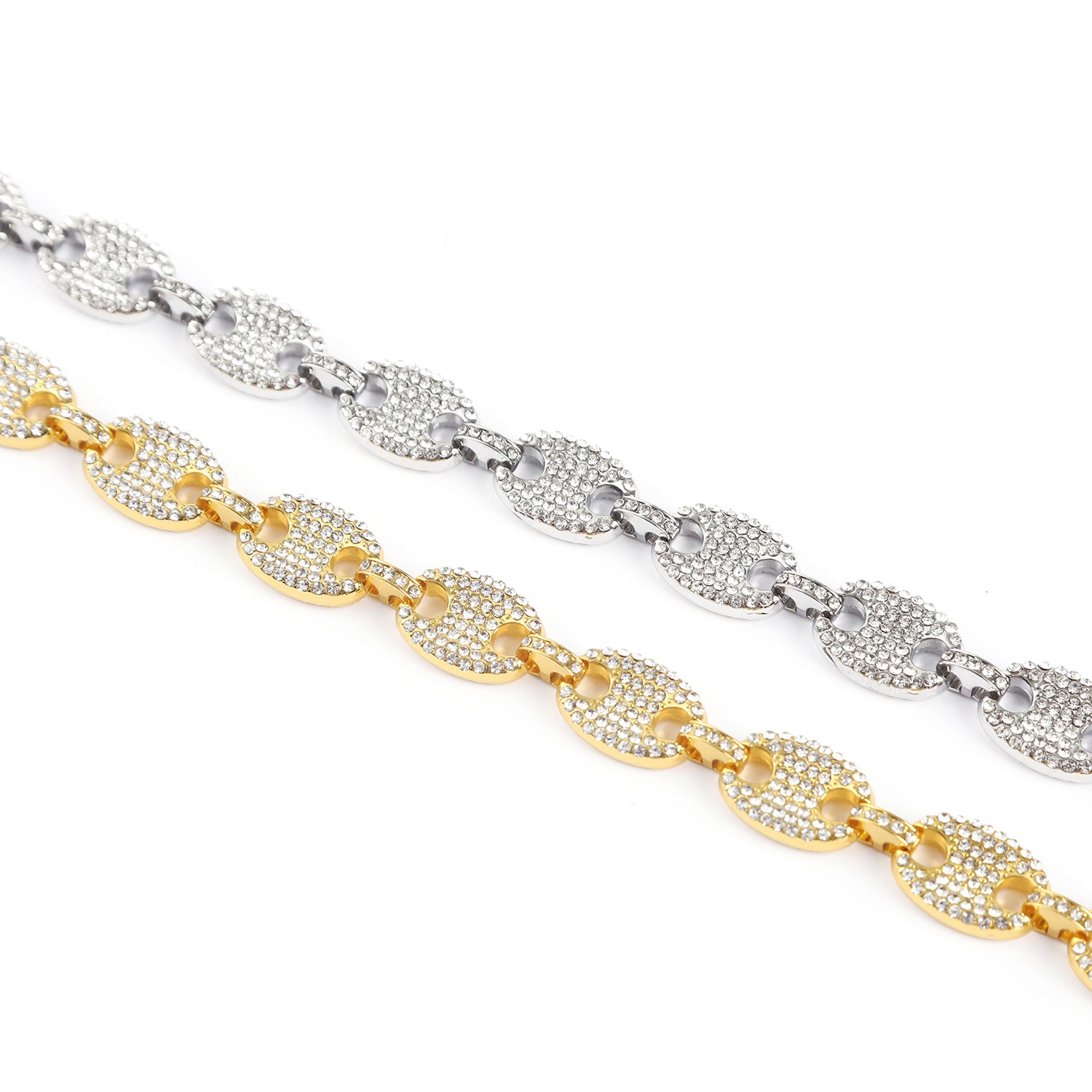 This men's necklace features a pig nose coffee bean design with rhinestones, making it a stylish and hip hop accessory suitable for both men and women.