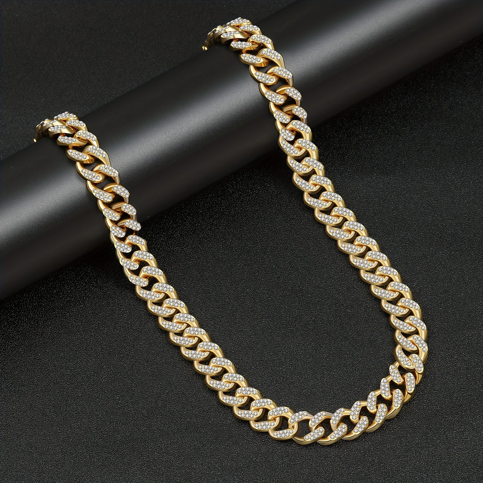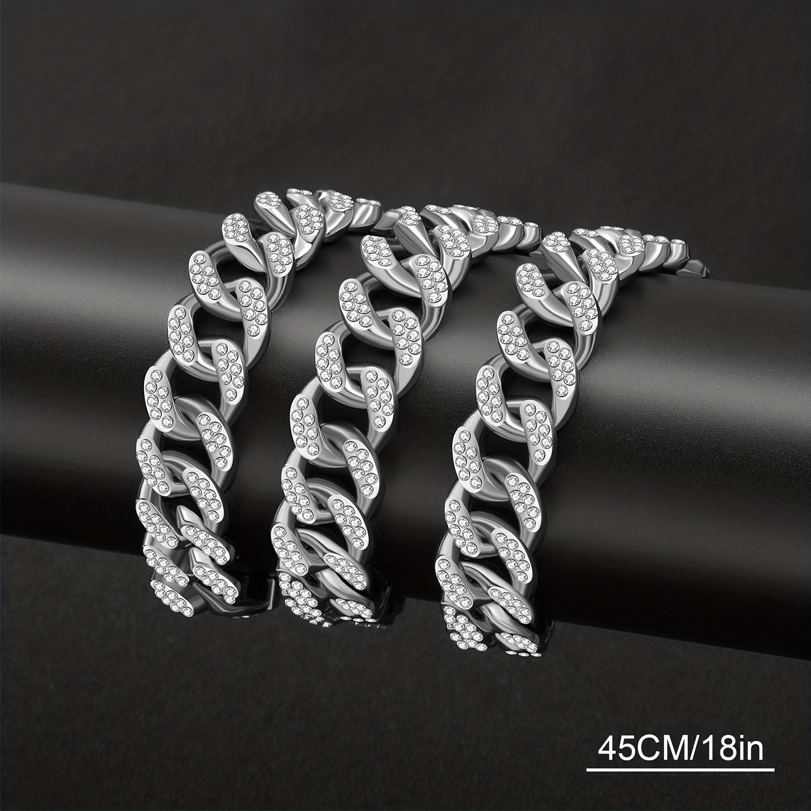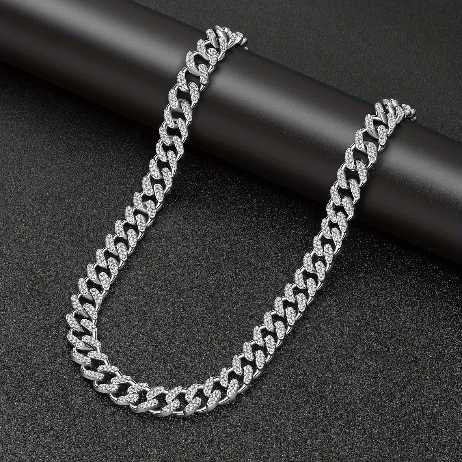 This edgy necklace features a pearlescent crystal Cuban tooth chain design, perfect for adding a touch of punk and hip-hop style to your look.