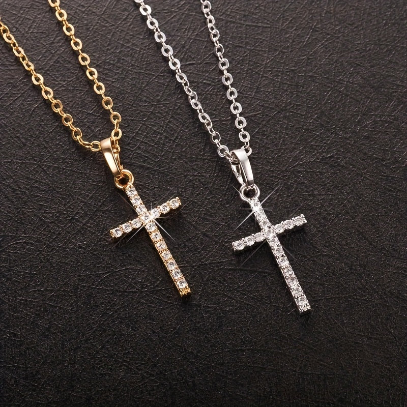 This punk style necklace features a rhinestone inlaid cross pendant, perfect for adding a touch of edgy style to your outfit. The clavicle necklace design is trendy and versatile, suitable for everyday wear or special occasions.