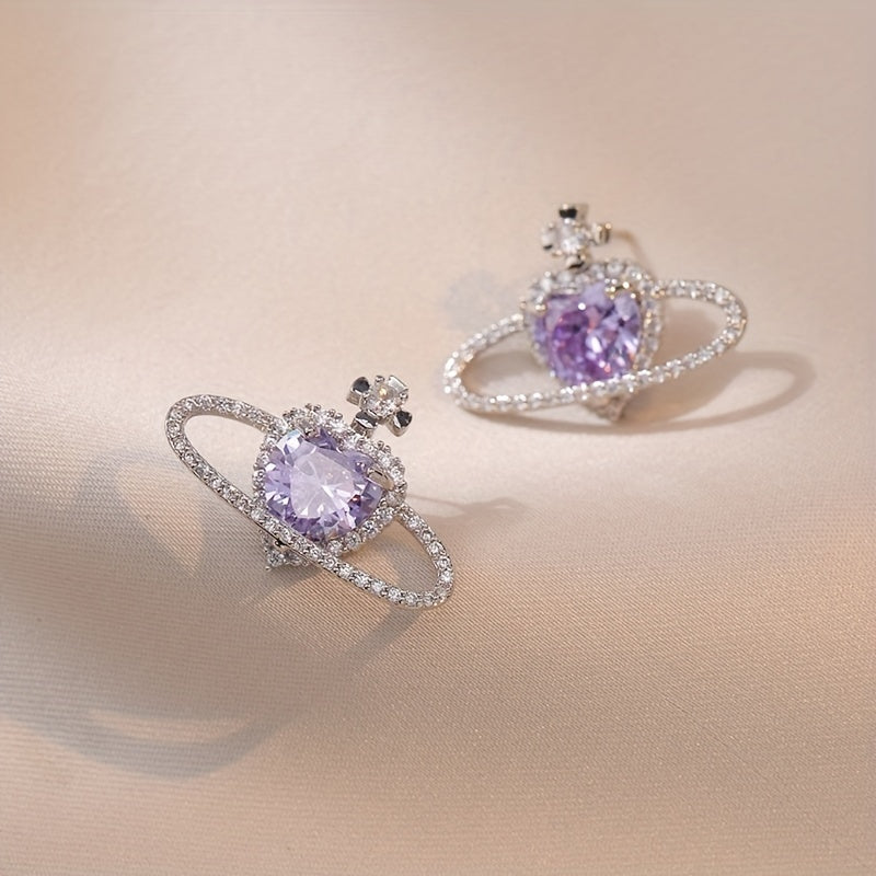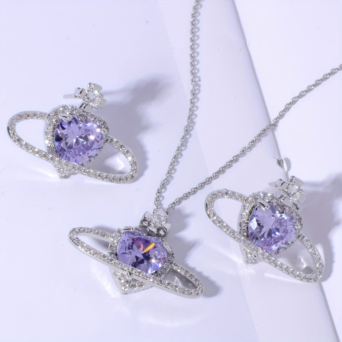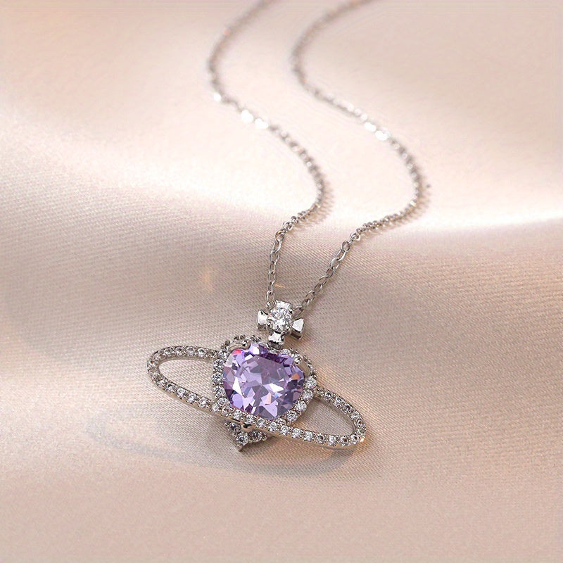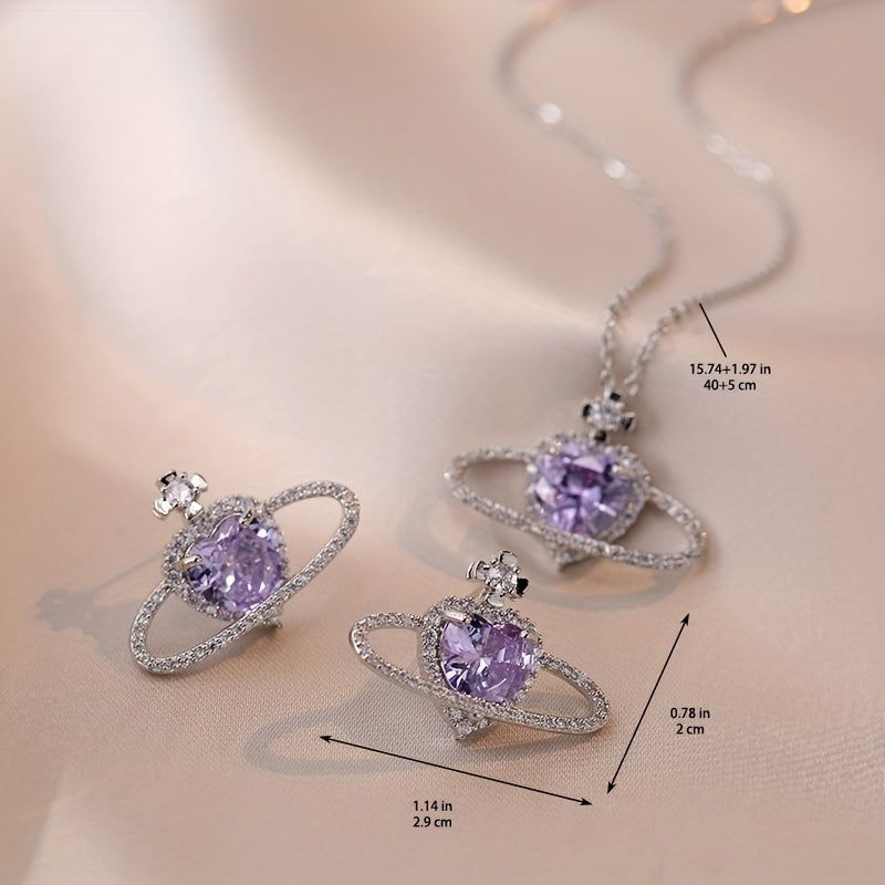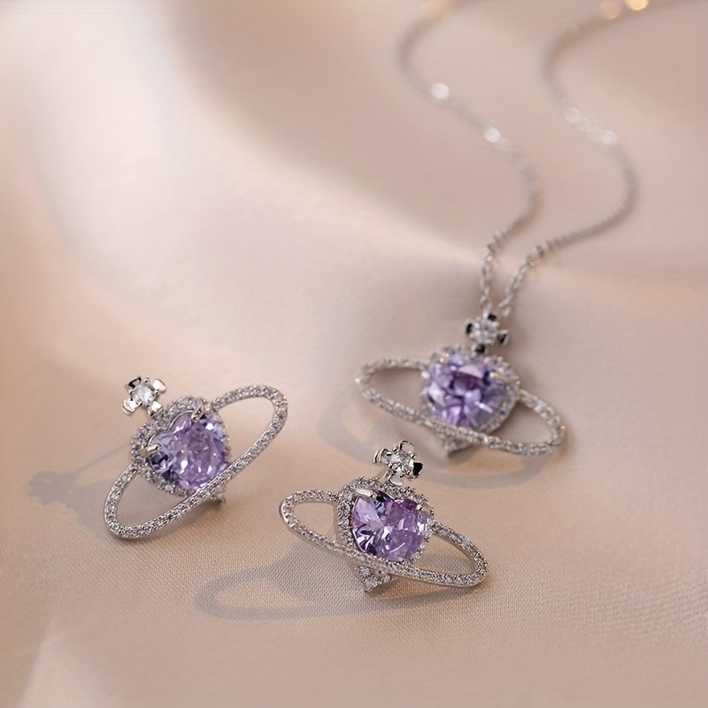 This set includes a stunning zircon pendant necklace and matching earrings in a beautiful purple planet design. Perfect for summer holidays and adding a touch of glamour to any outfit.