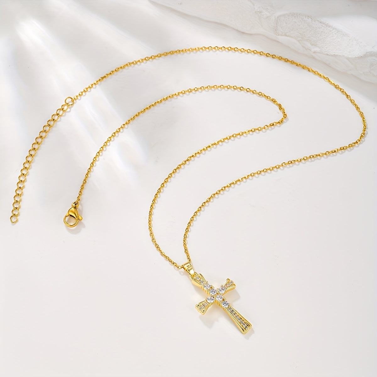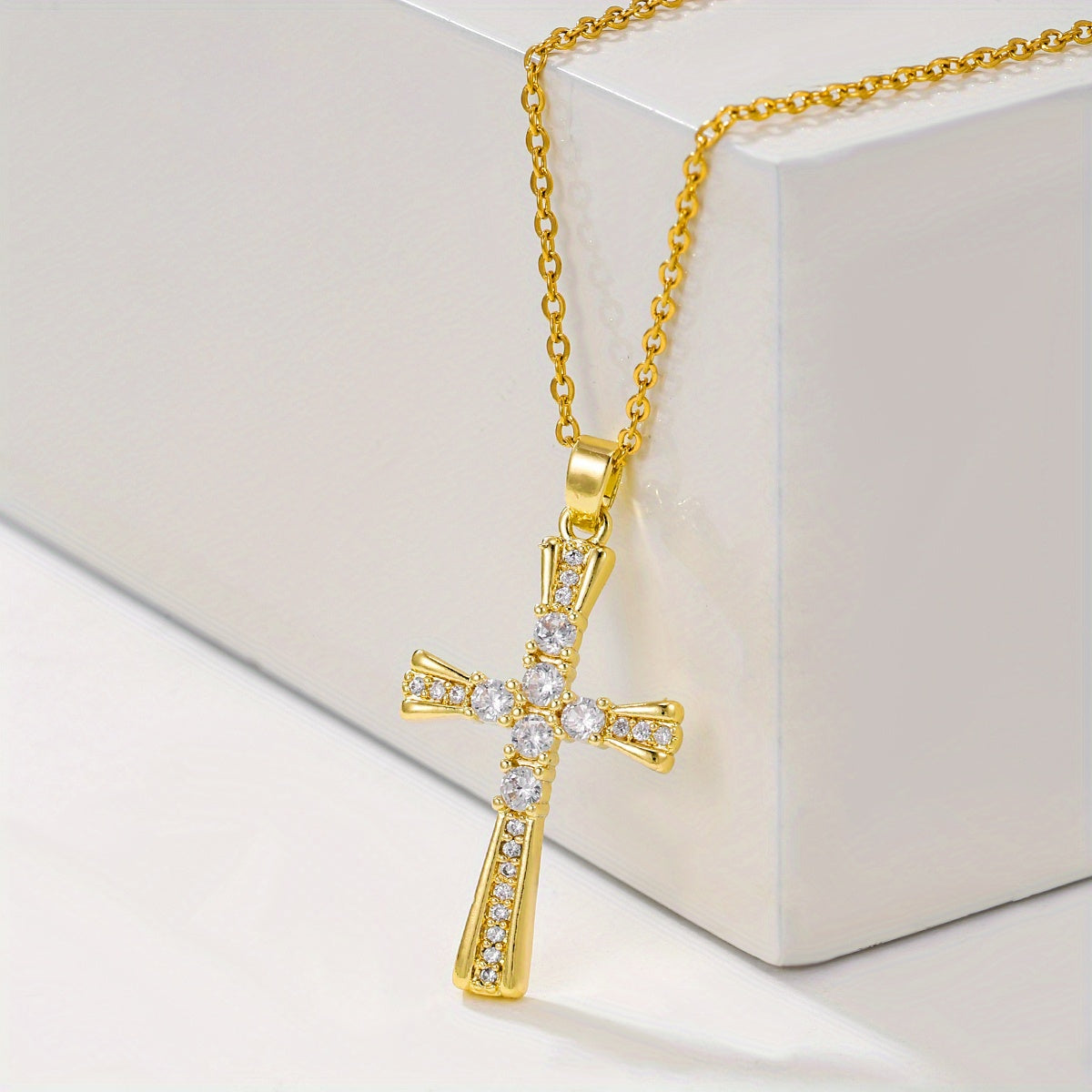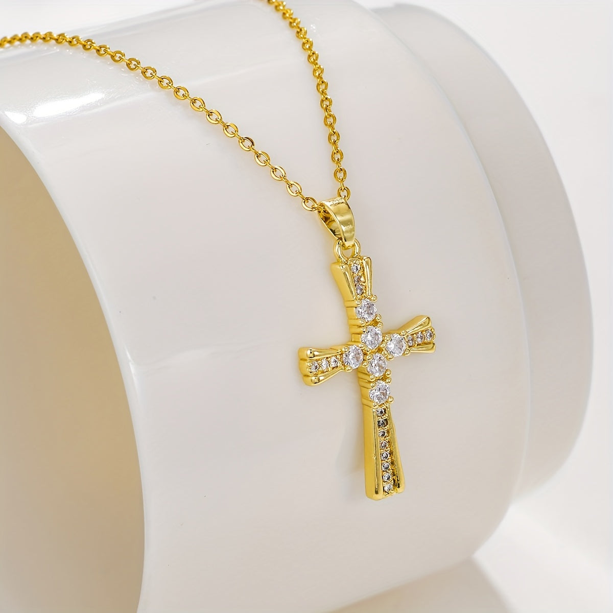 This stunning retro pendant necklace features an inlaid sparkling zircon cross design. Perfect gift for Christmas or Easter.