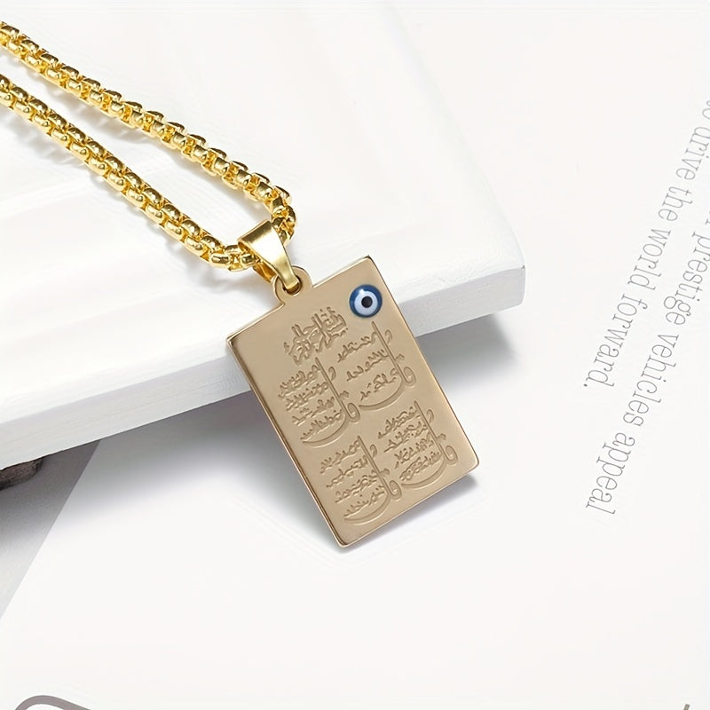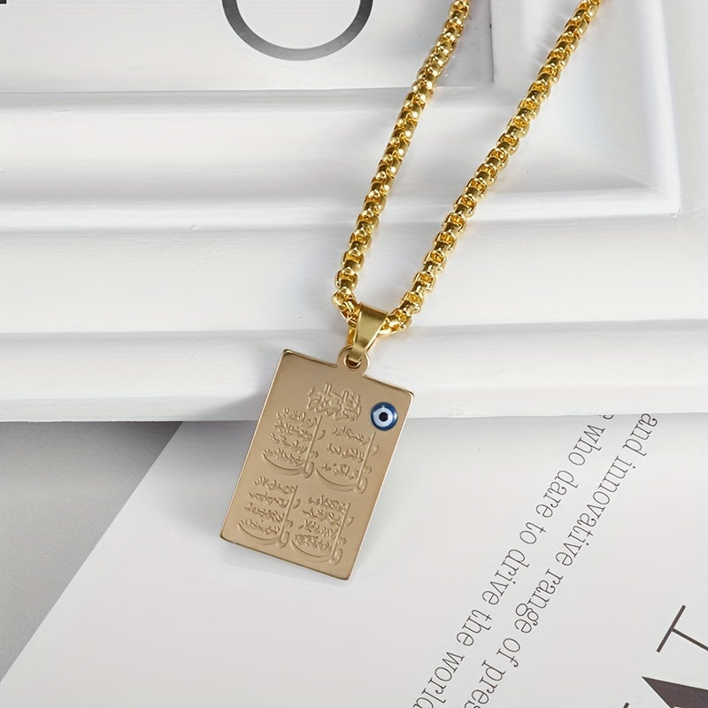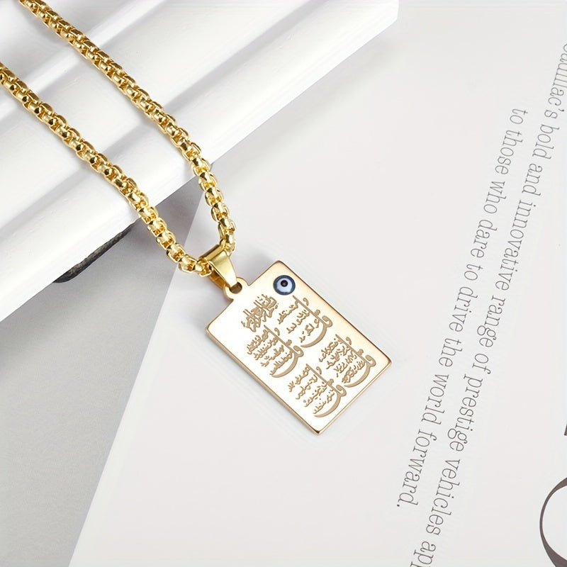 Enhance your style with this classic stainless steel pendant necklace featuring a square Quran plate design. Perfect for street parties and daily wear, this necklace makes a thoughtful gift for both men and women.