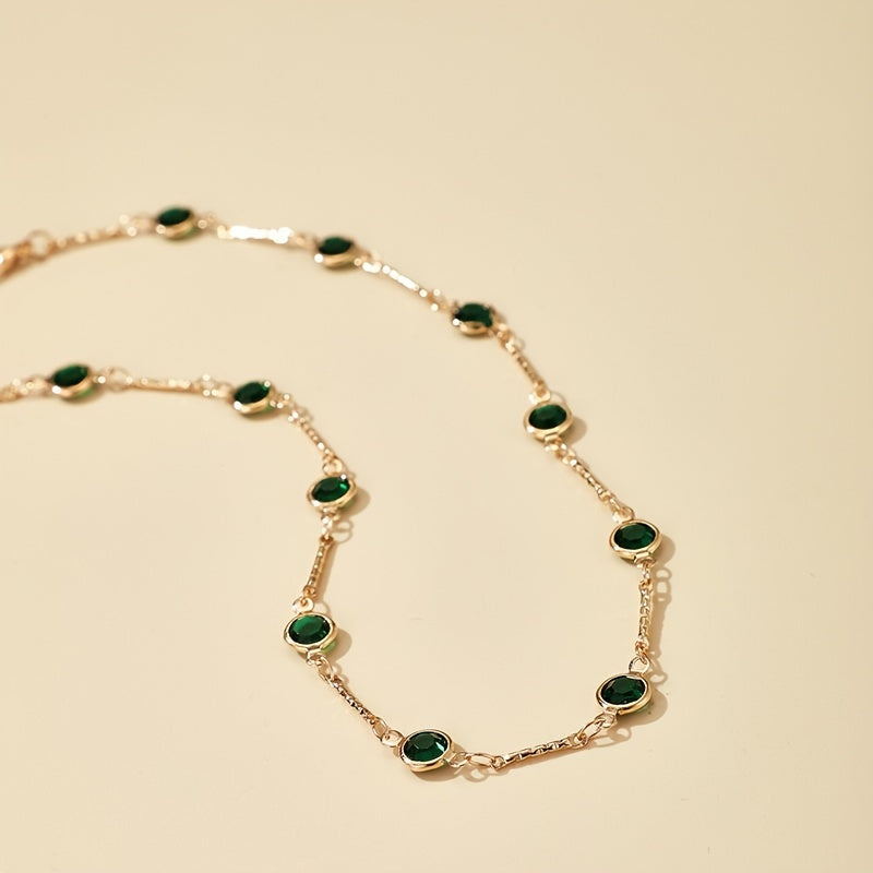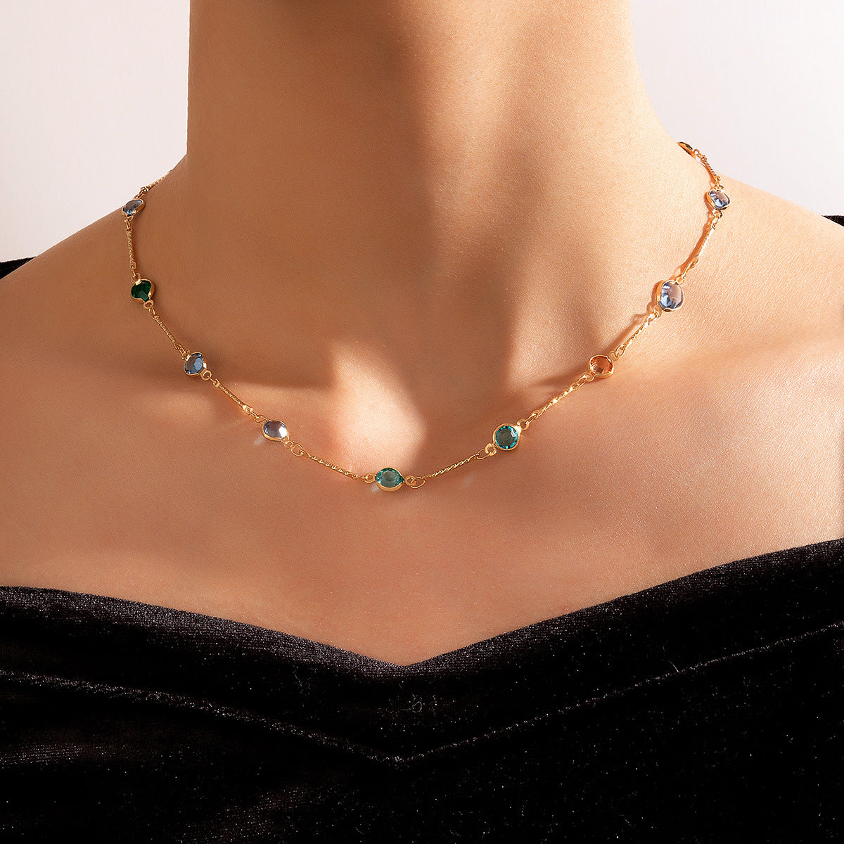 This dainty choker chain necklace features round shape rhinestones beads in a single layer design, perfect for your clavicle. It adds a touch of elegance to any outfit.