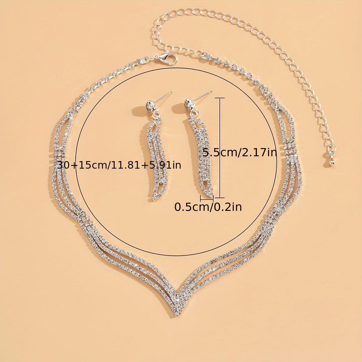 Make a statement with this stunning Rhinestone Classic Necklace & Earrings Bridal Set. Perfect for prom, costume parties, weddings, and more. Add a touch of elegance and sparkle to your outfit with this beautiful jewelry set.
