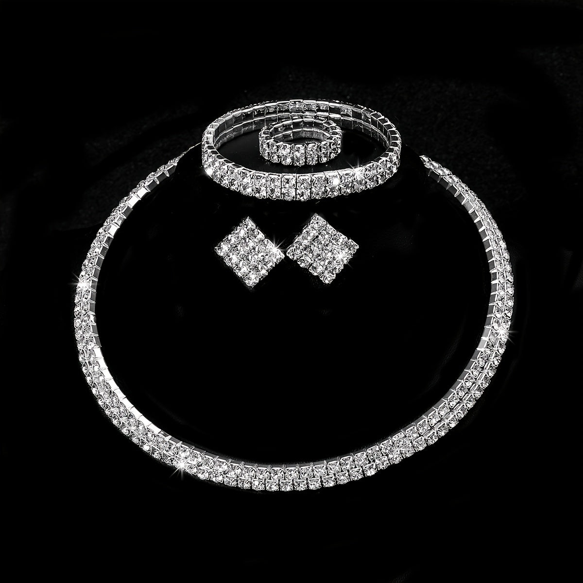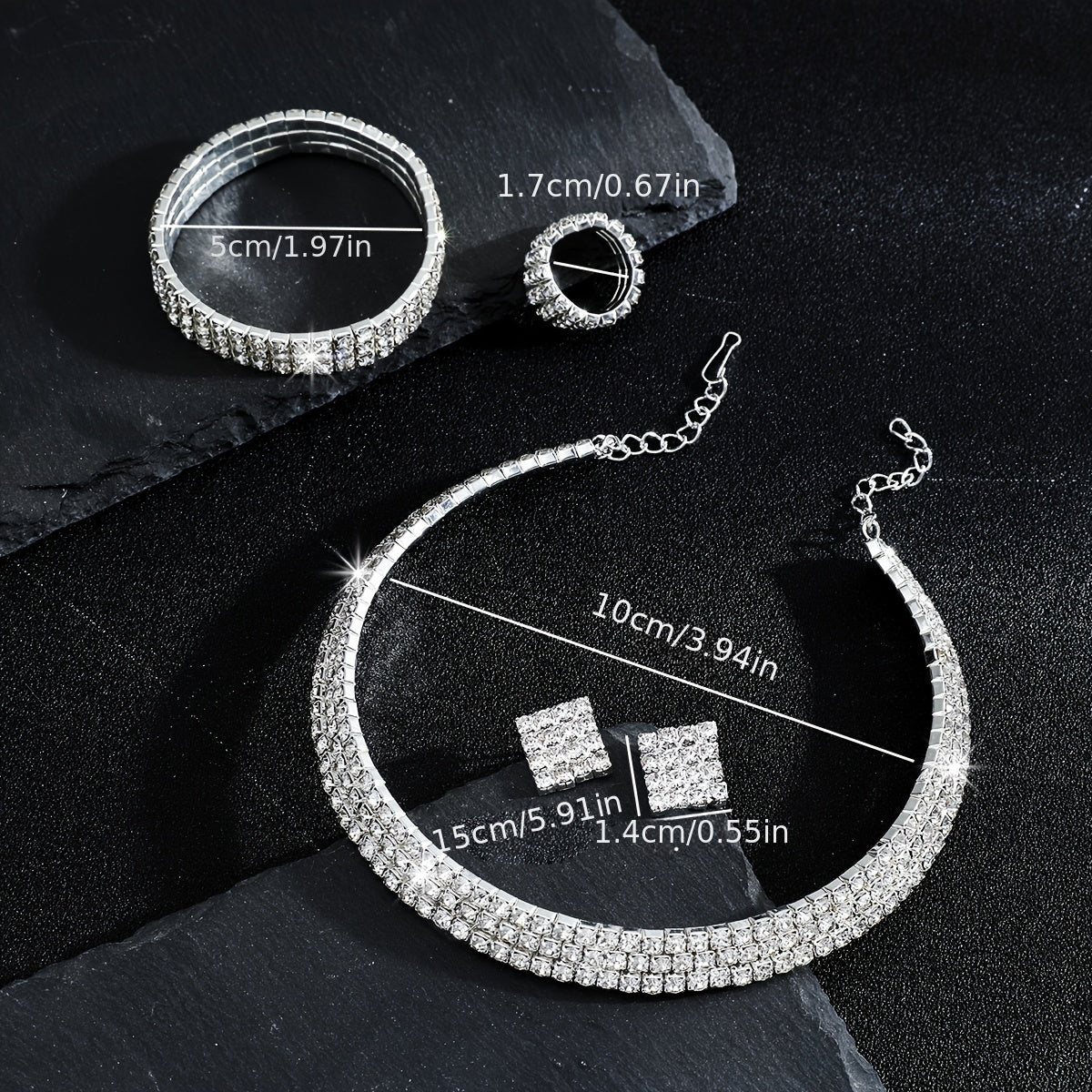 Rhinestone Crystal Jewelry Set: Choker Necklace, Earrings, Bracelet & Ring