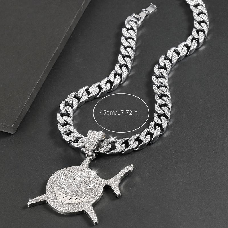 Make a bold fashion statement with this trendy shark pendant Cuban chain necklace. Crafted with 18K gold plating, it's a perfect accessory for men's casual or formal attire.