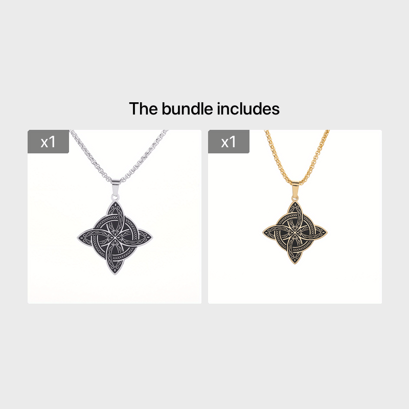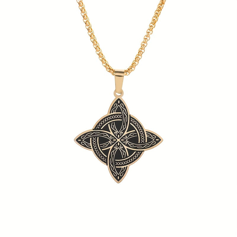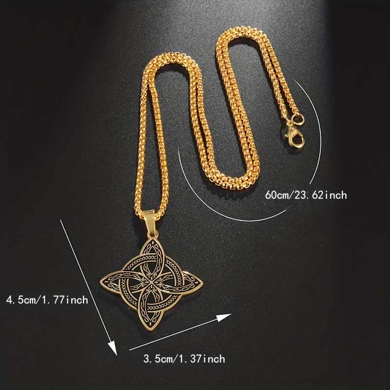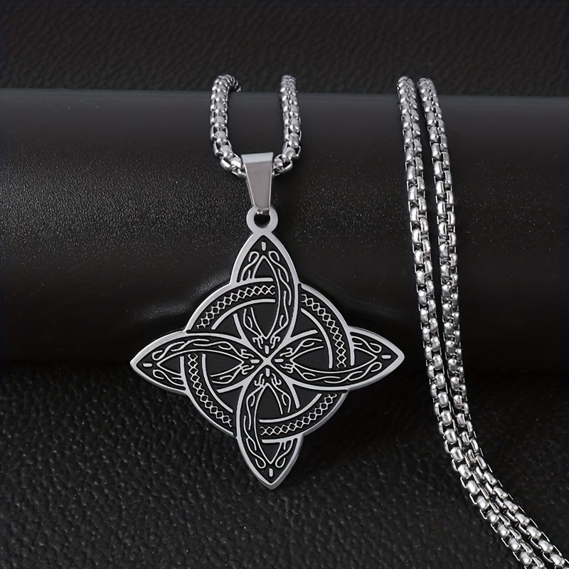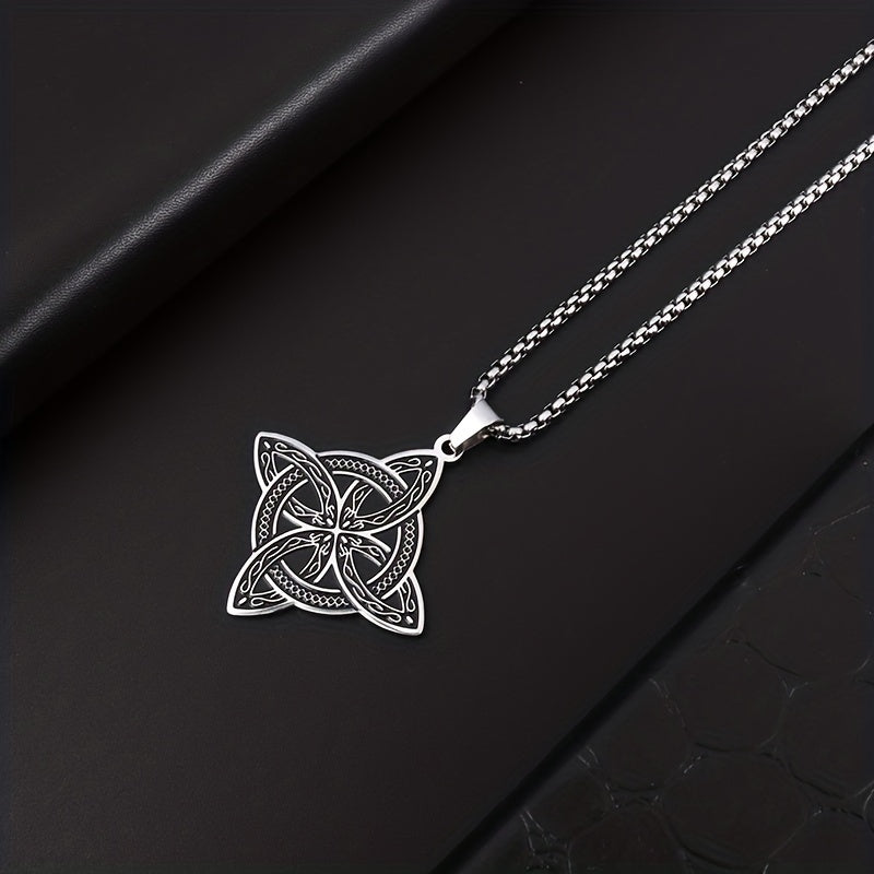 This stainless steel pendant necklace features a Celtic knot witch design. It makes a great gift for friends and family.
