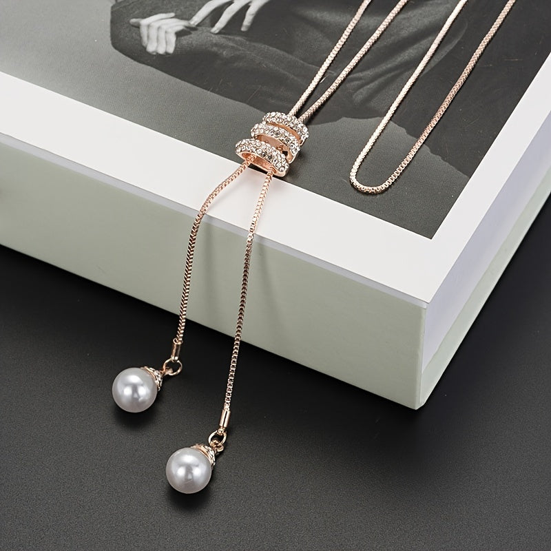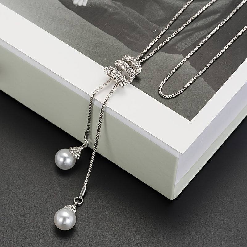 This elegant spiral faux pearl necklace is perfect for adding a touch of sophistication to any outfit. The long chain design makes it versatile for pairing with sweaters, dresses, or tops. Ideal as a gift for women and girls.